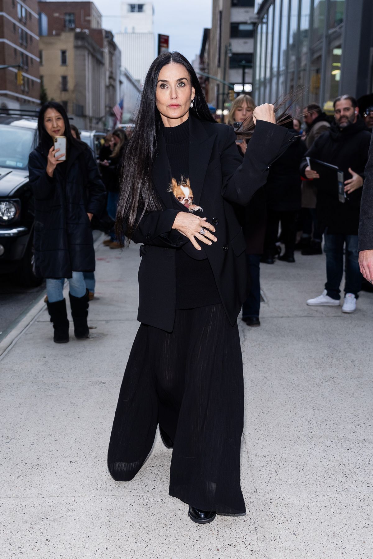 영화 <서브스턴스>에서 섬뜩하고 광기 어린 연기를 선보인 데미 무어, 하지만 반려견 필라프에게 그의 품은 세상에서 가장 따스하고 안락한 곳입니다. 블랙 맥시 드레스에 시크한 블레이저를 걸친 데미 무어 품속에 둥지를 튼 손바닥만 한 치와와라니, 이보다 사랑스러운 조합이 또 있을까요?