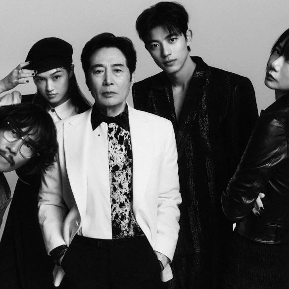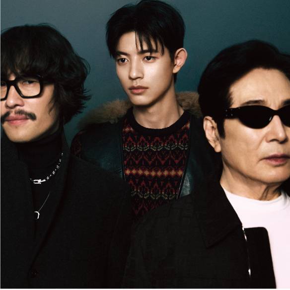 (왼쪽부터) 류승범이 입은 글렌 체크 더블 재킷과 스트라이프 셔츠, 타니, 팬츠, 벨트는 모두 Saint Laurent by Anthony Vaccarello. 아이웨어는 Cartier. 이수현이 입은 셔츠 블라우스와 베스트, 쇼츠는 모두 Vivienne Westwood. 백윤식이 입은 셔츠는 Lemeteque. 트위드 재킷과 팬츠는 모두 Heritz Tailor. 로몬이 입은 스트라이프 베스트와 수트 세트업은 모두 Eenk. 배두나가 입은 레더 재킷과 시스루 롱스커트는 모두 Saint Laurent by Anthony Vaccarello.
