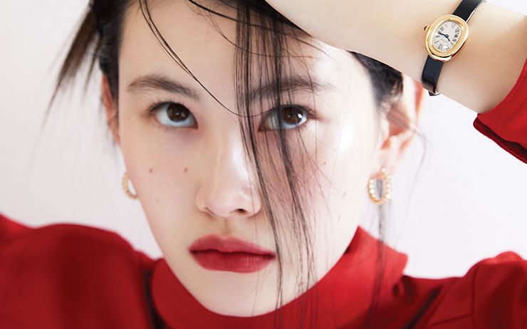 Damiani. 검지와 약지에 착용한 다이아몬드 세팅 리본 모티프의 루반 링은 가격 미정, 모두 Chanel