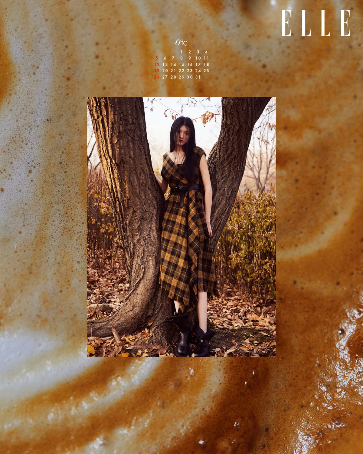 Ami. 타탄 체크 패턴 드레스와 레더 벨트, 블랙 부츠는 가격 미정, 모두