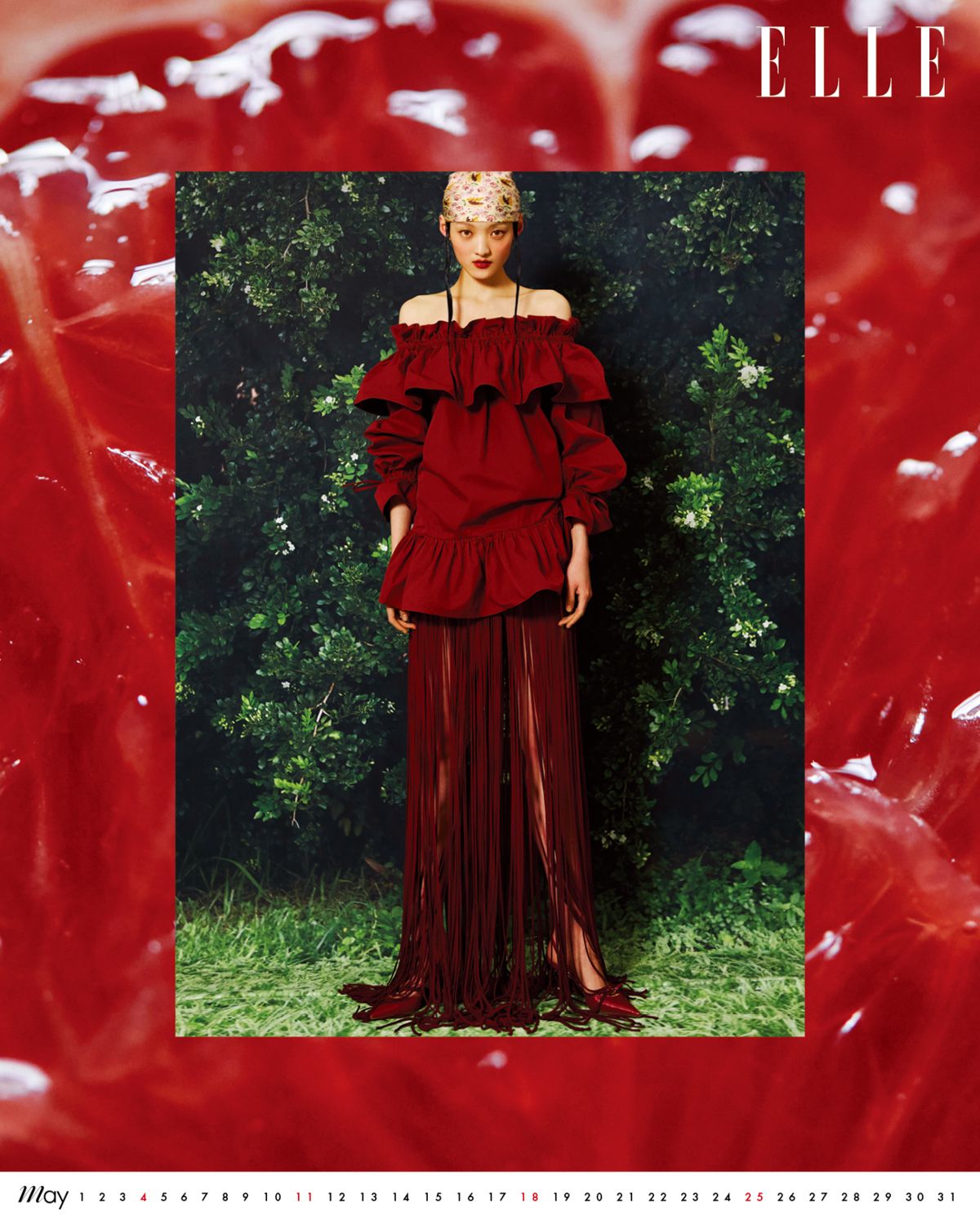Saint Laurent by Anthony Vaccarello. 프린지 스커트와 레드 펌프스는 가격 미정, 모두