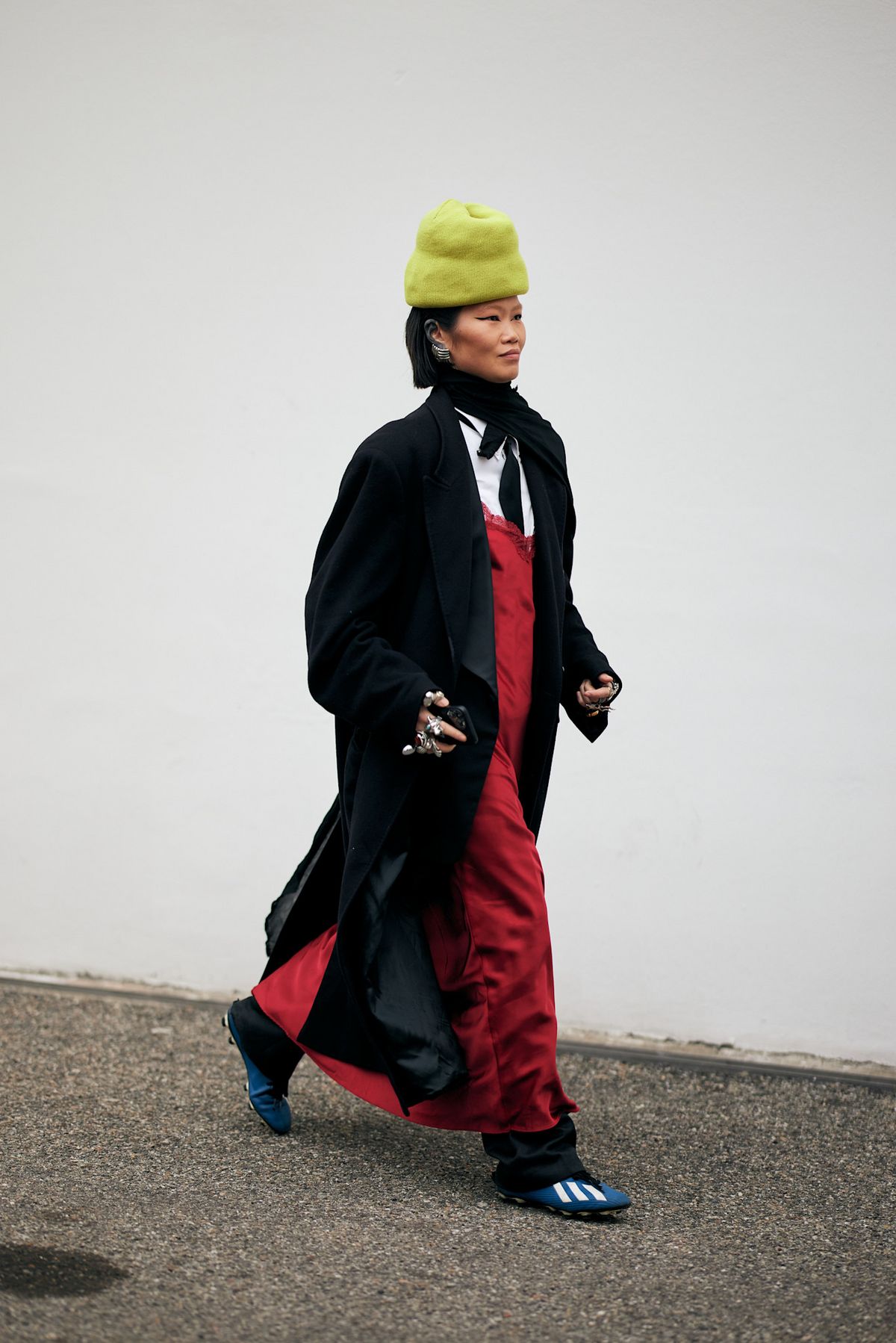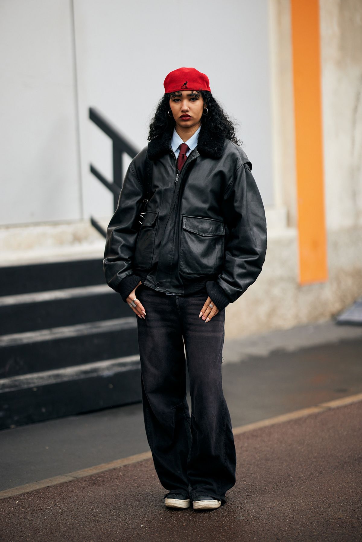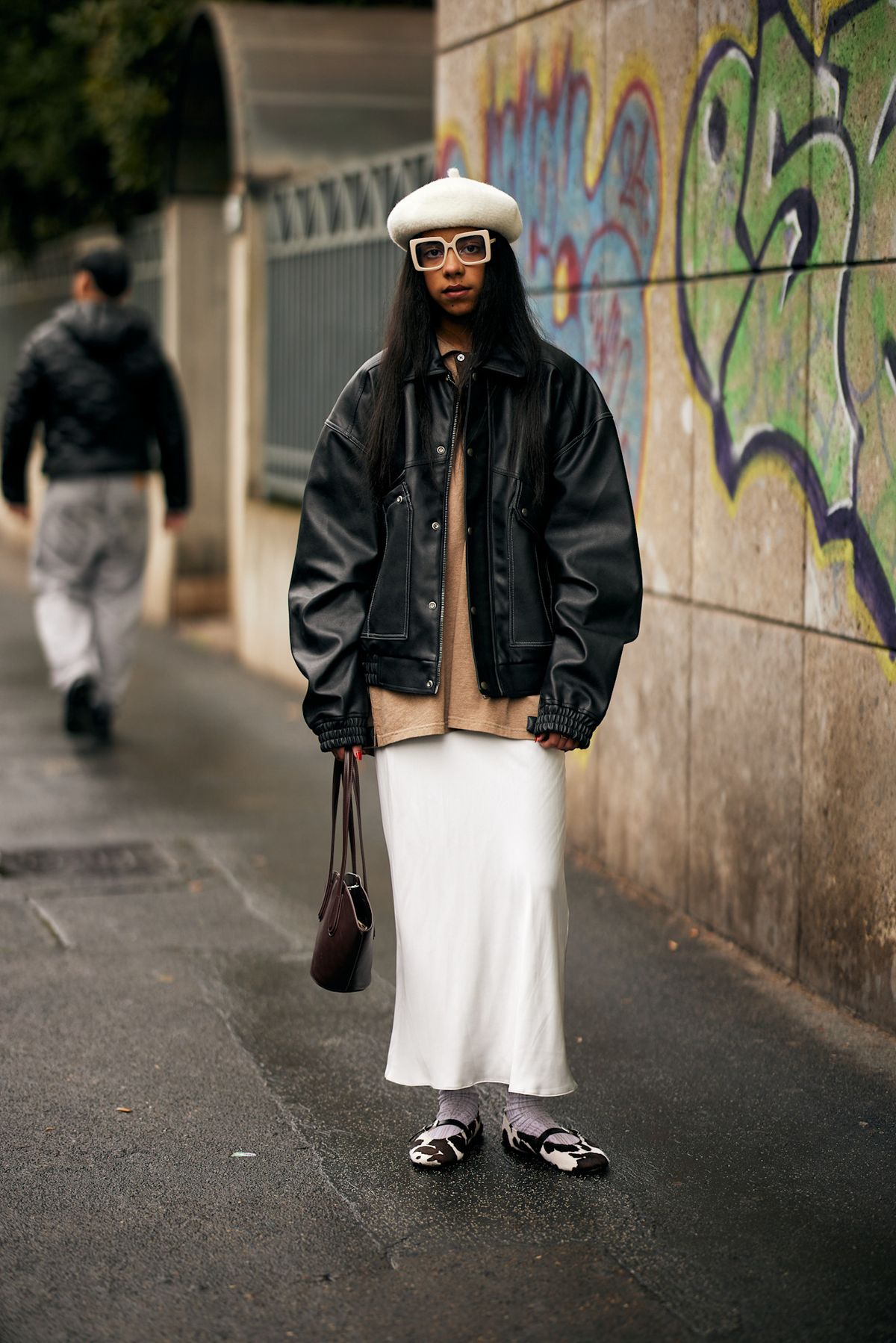 밀라노에서는 베레모도 진화를 거듭합니다. 레드 컬러의 캉골 베레모는 넥타이 룩과 오버사이즈 가죽 재킷과 만나 트렌디한 실루엣을 완성했죠. 봉긋하게 솟은 화이트 베레모에 볼드한 크림 컬러 프레임 안경을 매치하니, 지루하게만 느껴졌던 베레모의 새로운 면이 돋보이네요!