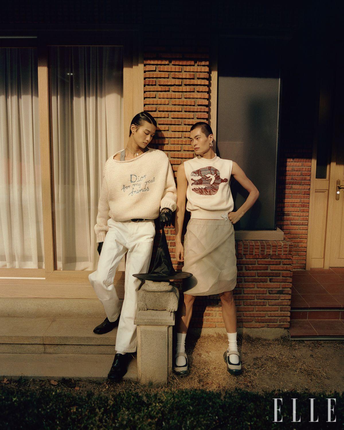 Prada. 현준이 입은 로고 니트 톱과 슬리브리스 톱, 화이트 팬츠, 실버 네크리스는 가격 미정, 모두