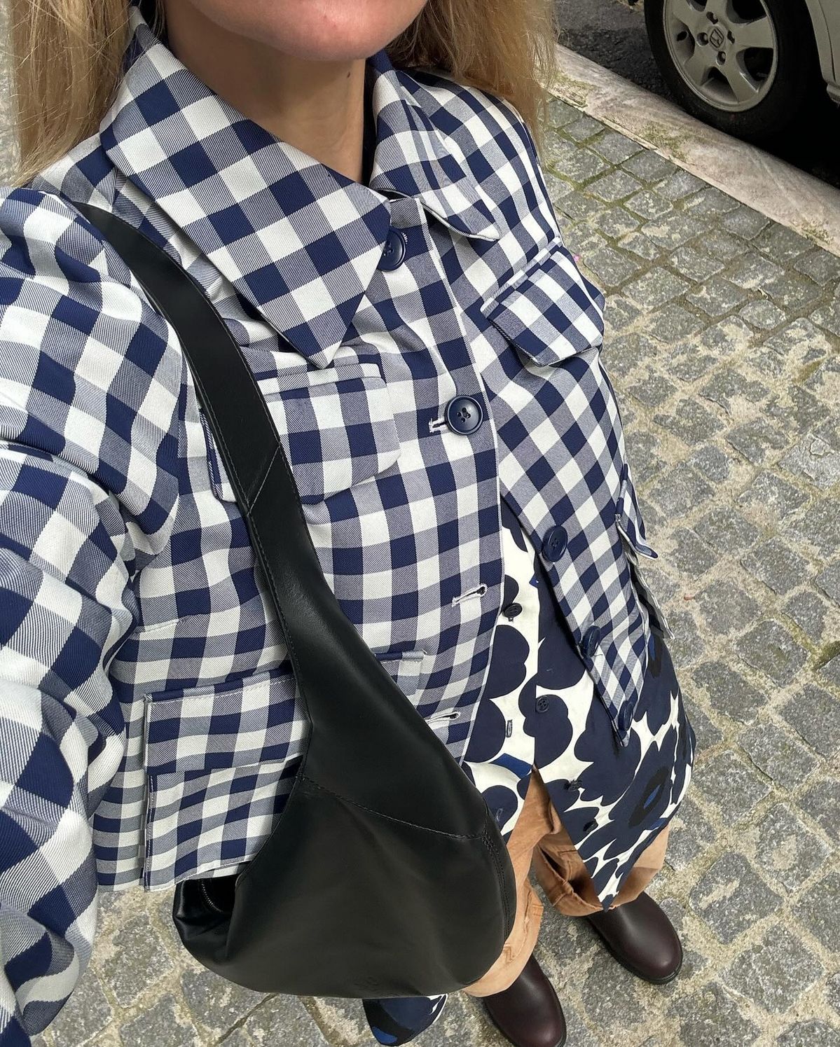 너무 채도가 높은 깅엄 체크가 부담스럽다면 리스본의 패션 인플루언서 이네스 이사이아스의 룩을 참고해보세요. 어두운 톤의 깅엄 체크라도 메리 제인이나 발레리나 플랫처럼 사랑스러운 슈즈와 함께 매치하면 돋아나는 새싹처럼 산뜻해 보입니다.