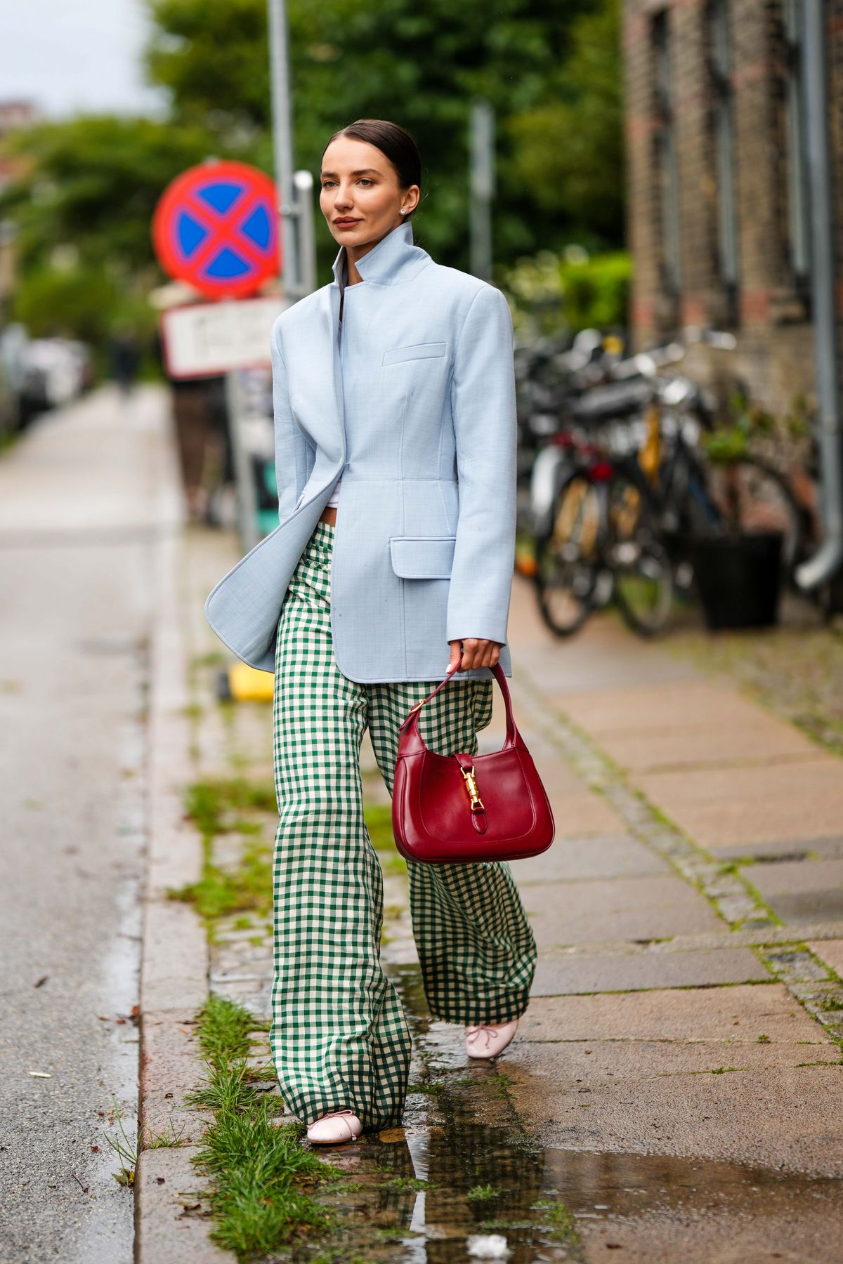 깅엄 체크를 배로 신선하게 즐기는 방법은 상, 하의를 모두 같은 패턴으로 과감하게 입는 것입니다. 파리의 인플루언서 올리비아처럼 말이죠.