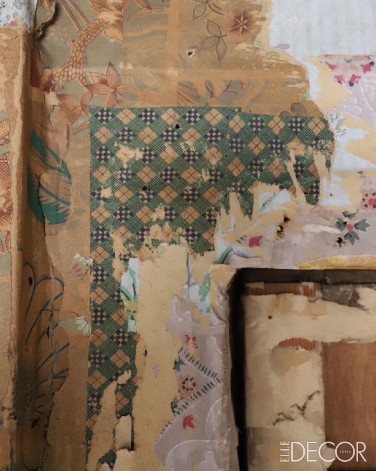 복원 현장의 벽지와 복원 벽지로 마감된 현대의 공간들.