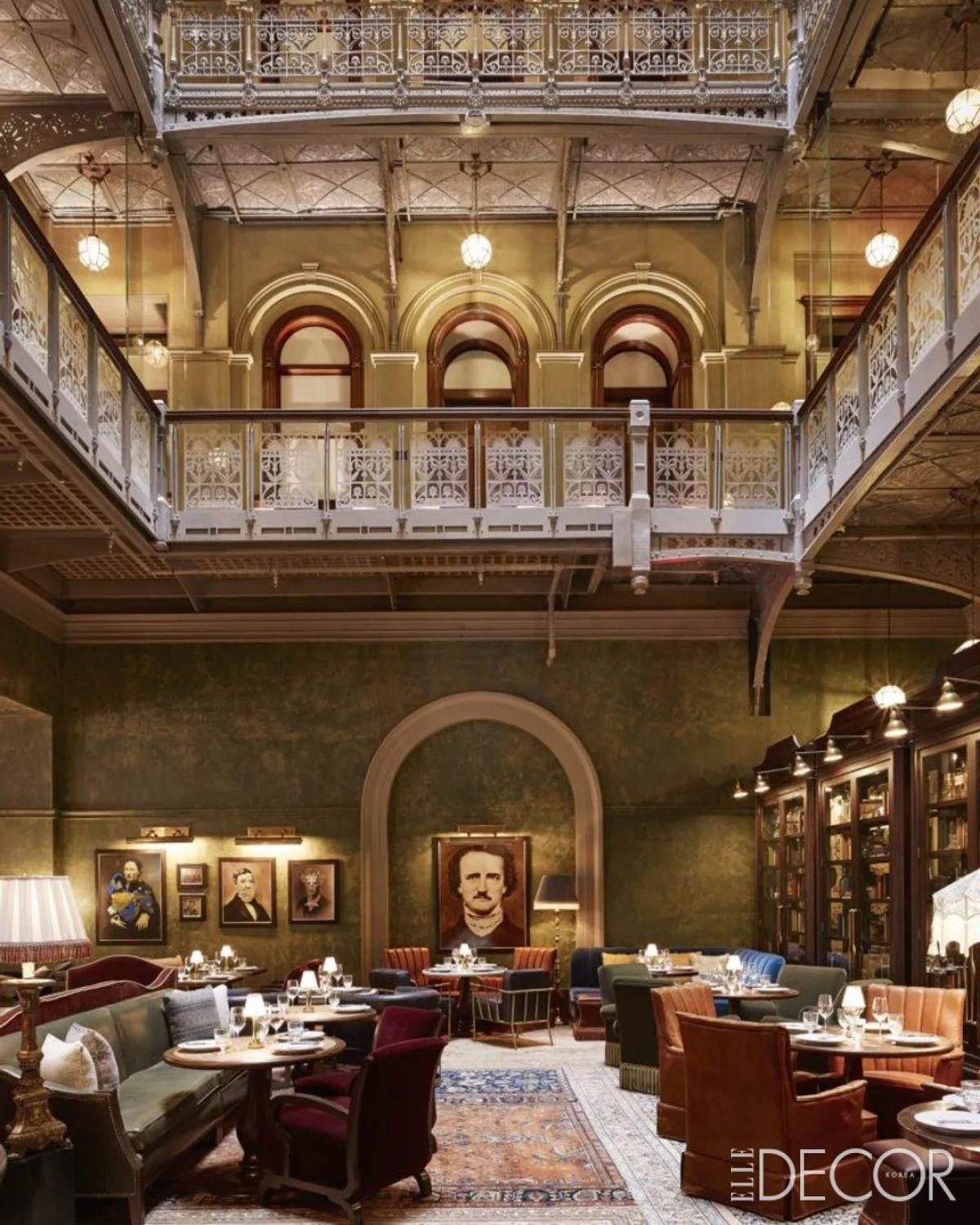 비크먼 거리의 이야기는 1761년으로 거슬러 올라간다. 미국 최초로 셰익스피어의 <햄릿>이 초연된 곳, 에드거 앨런 포와 랠프 월도 에머슨 같은 문인들이 드나들었던 장소. 그리고 1881년 뉴욕 최초의 9층짜리 고층 건물로 태어나 법률가들의 사무실이 됐다가, 2016년에 레너베이션을 거쳐 지금의 모습을 갖췄다. 발끝에 오래된 역사가 채이는 듯한 거리에서 문을 열고 호텔로 들어서면 마치 과거에 들어선 기분이 든다. 이 신비로운 느낌은 비크먼 호텔의 상징인 아트리움 덕분이다. 아트리움은 고대 로마 건축에서 유래한 ‘실내 중정’을 의미한다. 비크먼의 아트리움은 도넛처럼 가운데가 뚫린 9층 높이의 공간으로, 유리 천장에서 쏟아지는 빛으로 가득하다. 빛은 층마다 섬세하게 조각된 철제 난간과 규칙적으로 배열된 200여 개의 방을 비추며, 공간을 하나의 거대한 만화경처럼 보이게 한다. 1층에서 위를 바라보며 문득 궁금해졌다. 수직으로 뻗은 시야가 이렇게 극적이라면 9층에서 내려다보는 건 어떨까? 한 투숙자는 그곳에서 뉴욕의 심장을 들여다보는 것 같다고 했지만, 나는 영화 <인터스텔라>의 한 장면이 떠올랐다. 주인공이 시간을 초월해 시공간의 틈새를 바라보던 그 순간처럼 과거와 현재가 중첩되는 아찔한 경험을 할 수 있었다.