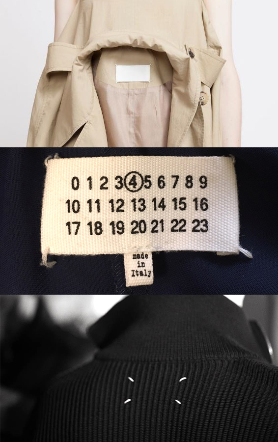 메종 마르지엘라의 화이트 스티치 레이블은 디자이너 마틴 마르지엘라의 은둔적인 성향과 닮았다. 글씨 하나 없이 숫자로만 구성된 로고의 디자인과 사각형의 꼭지점을 담당하고 있는 네 개의 스티치까지 어느 것 하나 빠지지 않고 ‘쿨’한 부분이 그렇다. 숫자를 통해 제품의 카테고리를 분류한 똑똑한 레이블은 고정하는 실을 제거하면 브랜드의 정체성을 구분할 수 없게 되어 버리지만, 역설적이게도 해체주의와 구조적인 디자인을 내세우는 마르지엘라의 아이덴티티는 더욱 확고하게 드러나게 된다. 옷 안에 브랜드의 레이블을 삽입하는 것이 럭셔리한 가치를 부각시키는 방법이라고 여겼던 정석에 대한 반항이랄까. 무엇이 됐든 멀리서도 한 눈에 알아볼 수 있는 이 의도적인 스티치는 브랜드의 역설적 미학을 표현하는 성공적인 라벨링 작업으로 손꼽힌다.
