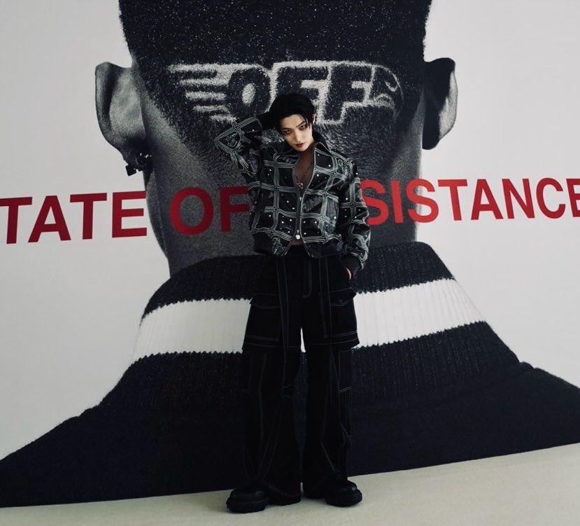 오프화이트 쇼에 참석한 유일한 K-팝 남성 아티스트의 주인공은 민기였습니다. 다이스 패턴의 블랙 레더 재킷과 볼드한 선글라스로 인간 오프화이트 룩을 완벽히 소화한 모습이네요.