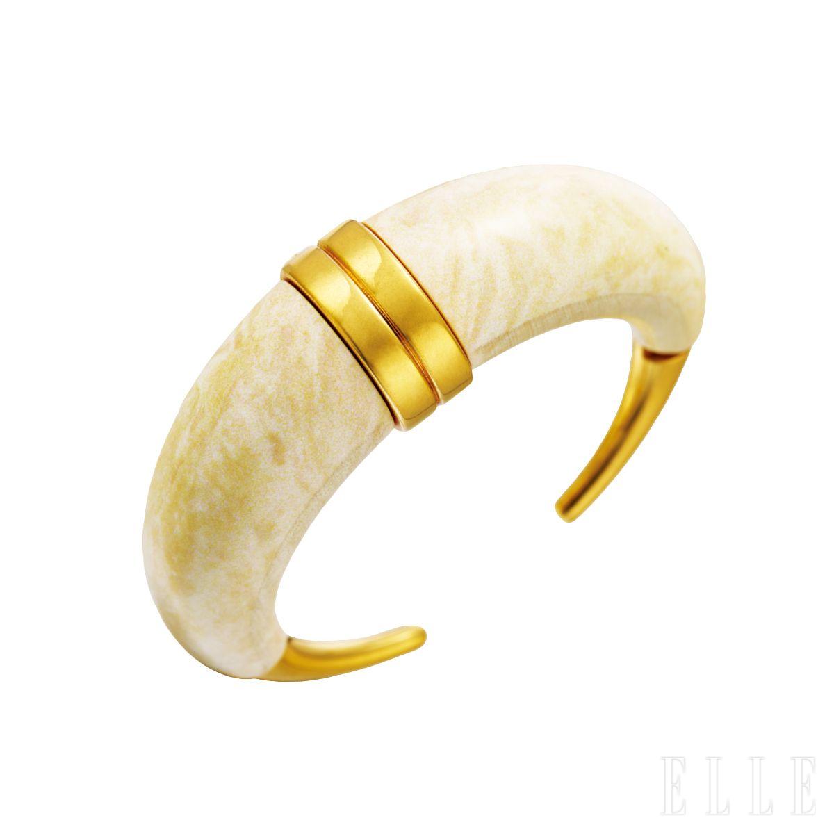 레진과 메탈이 어우러진 뿔 모양의 커프는 가격 미정, Saint Laurent by Anthony Vaccarello.