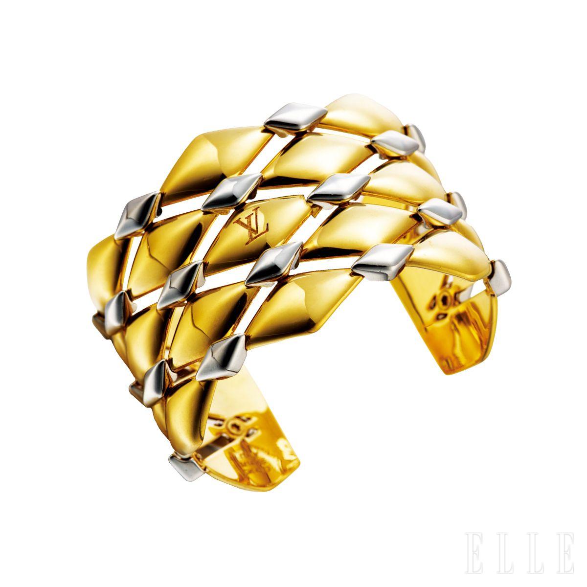 퀼팅 모티프 디테일이 돋보이는 브레이슬릿은 가격 미정, Louis Vuitton.