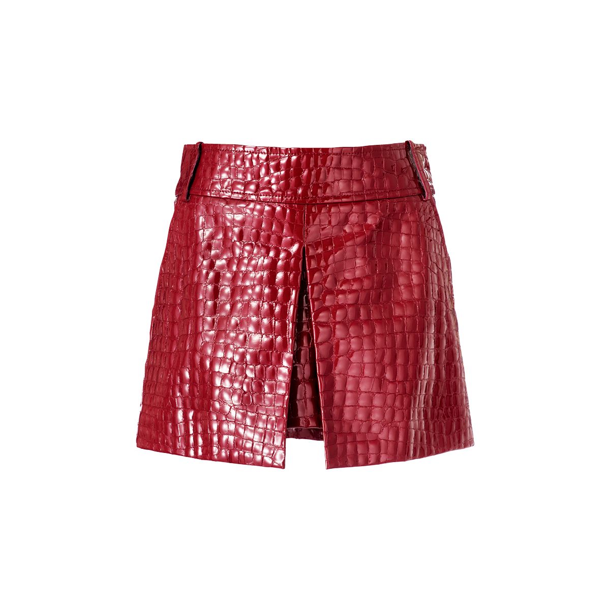 미니멀한 디자인의 레더 미니스커트는 가격 미정, Juun.J.