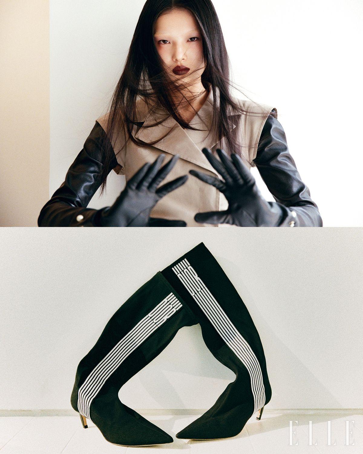 (아래) 스트라이프 디테일의 로고 롱부츠는 Dior.
