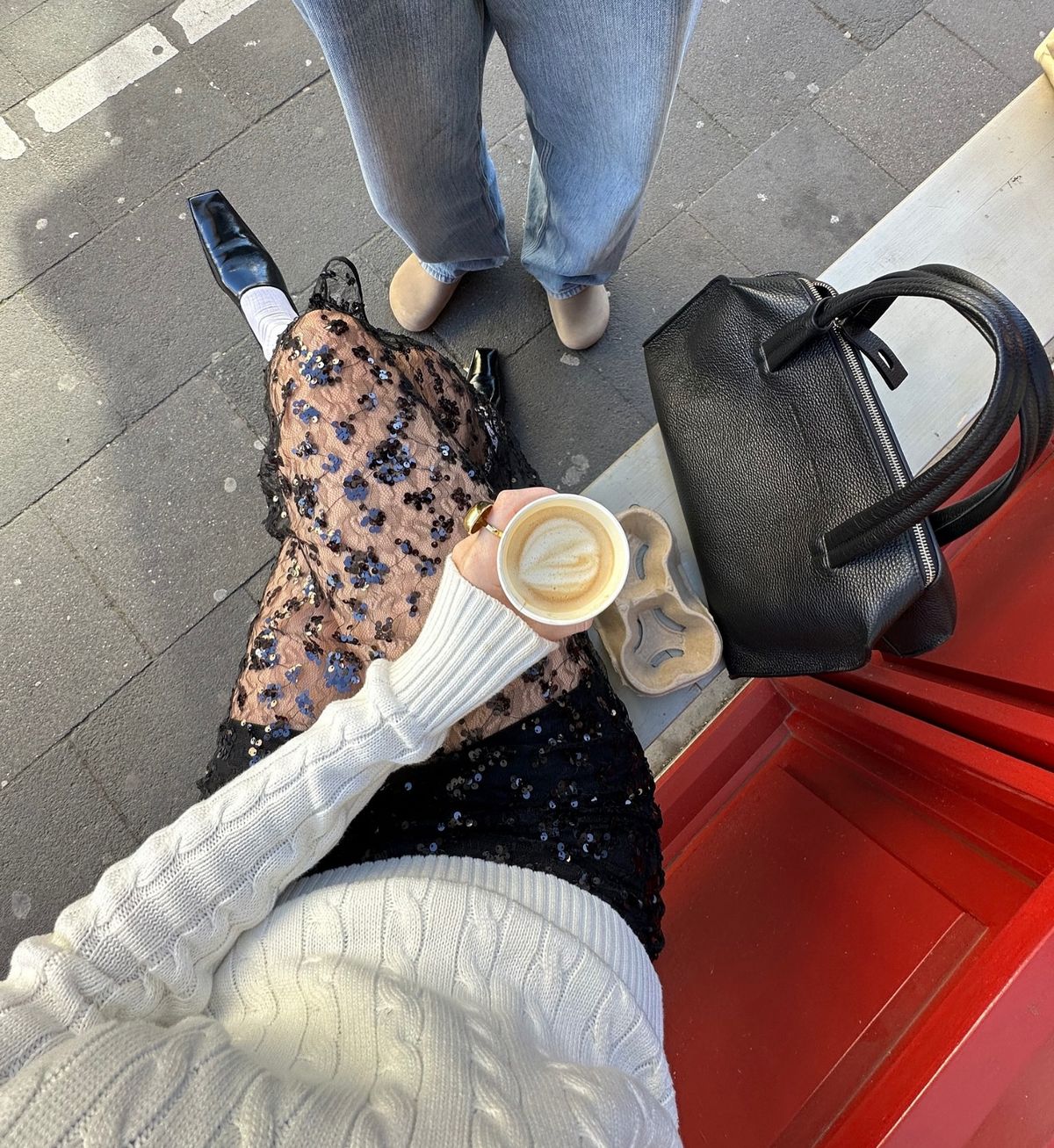 짧은 길이의 레이스 스커트는 로맨틱하면서도 러블리한 무드를 연출해줍니다. 콘텐츠 크리에이터 알레시아가 입은 것처럼 와이드 데님 위에 레이어링해도 근사하답니다.
