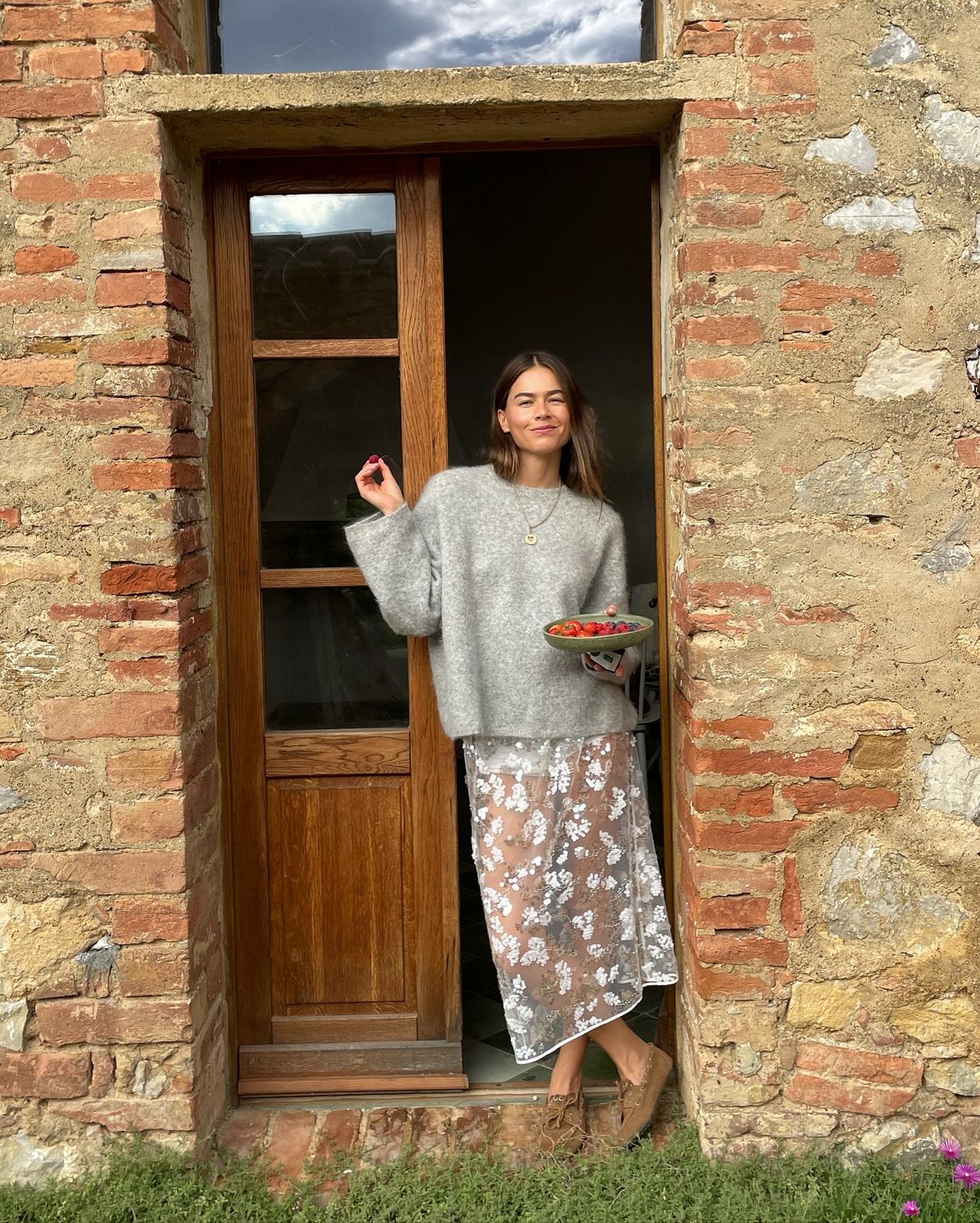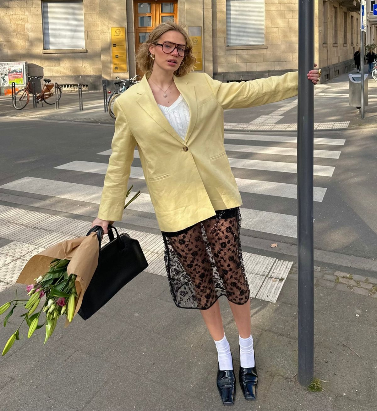 조금 더 과감해질 준비가 됐다면 짧은 길이의 사이클링 쇼츠 위에 시스루 치마를 입어보세요. 힙을 살짝 덮는 길이의 재킷 또는 니트와 함께 매치하면 이보다 더 매력적이고 로맨틱할 수 없을 거예요.