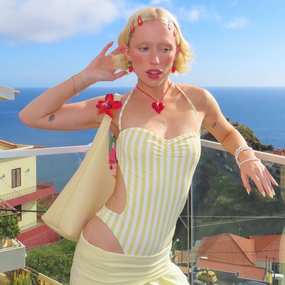 아이브 리즈는 레이스 디테일의 보닛을 두르고, 한 쪽에 분홍색 머리삔을 꽂아 키치한 감성을 배가시켰습니다. 소녀 감성으로 땋은 머리 사이사이에 작은 캐릭터 장식도 더해 몽글몽글한 러블리 무드를 만들어냈죠. 인형 같은 스타일링을 좋아하면 참고할 만한 아이디어!