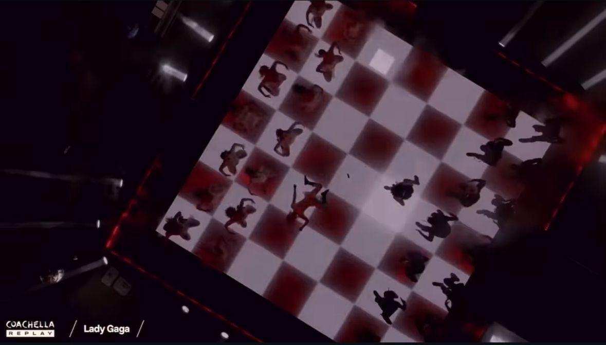 2025년 코첼라에서 선보인 가가의 무대는 마치 가가와 맥퀸의 부활제처럼 보였습니다. 레이디 가가는 ‘Poker Face’를 부르며 체스판을 연상시키는 무대 연출과 의상으로 알렉산더 맥퀸의 2005년 SS 컬렉션 패션쇼 ‘It’s Only a Game’을 재해석했죠. 당시 런웨이는 거대한 체스판처럼 꾸며졌고, 그 위에서 모델들이 체스 말처럼 배치되어 패션 산업의 전략적 움직임을 은유했어요. 가가는 이를 무대 연출로 변주해 자신의 페르소나들이 서로 대결하는 듯한 퍼포먼스를 펼쳤습니다.