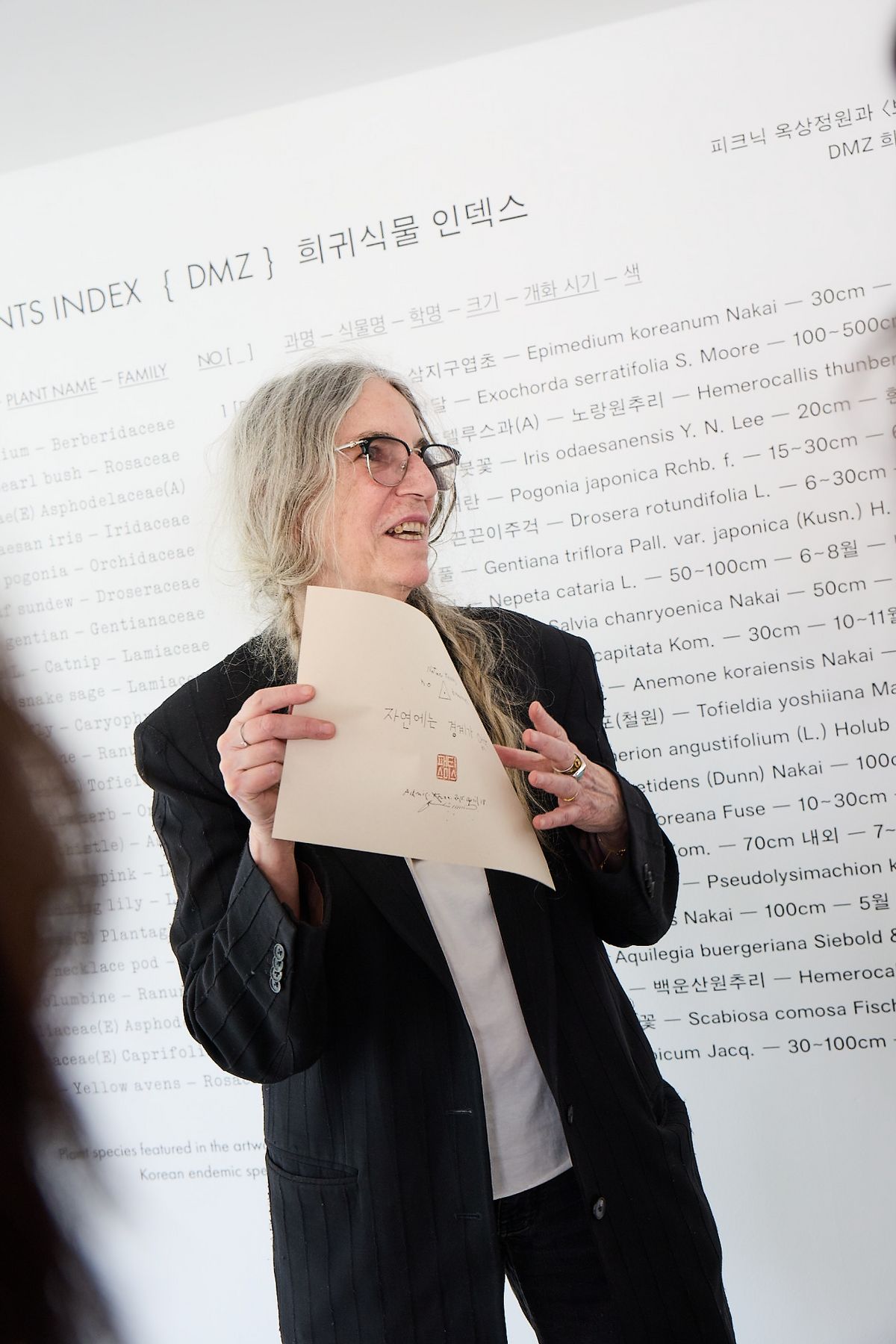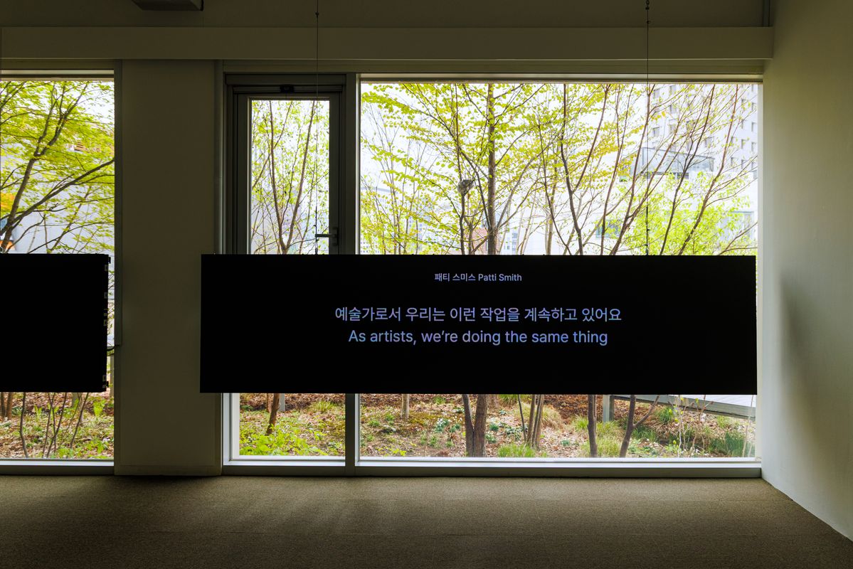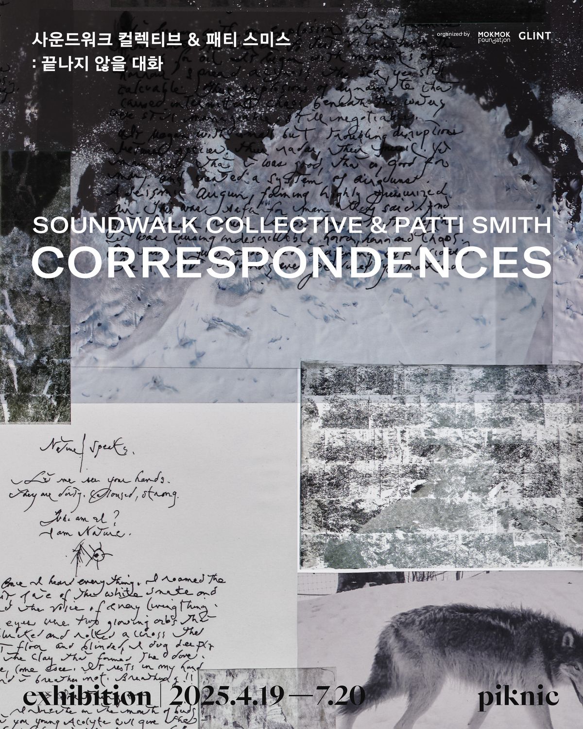 피크닉에서 열리는 이번 전시는 전설적인 록 아티스트 패티 스미스와 사운드워크 컬렉티브의 사운드 프로젝트입니다. 두 아티스트는 소리를 매개로 기억의 흔적을 발견한다는 공통점을 기반으로 10년 이상 협업해 왔는데요. 세계 역사와 인물들을 주제로 한 영상, 드로잉, 콜라주 작품을 감상할 수 있습니다. 특히 한국 DMZ 지역의 토양을 활용한 설치작도 있으니 테라스 층까지 꼭 올라가 보세요!