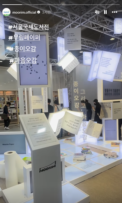 무림페이퍼의 체험형 전시관 '종이오감, 마음오감'도 흥미롭게 다가옵니다. 무림페이퍼는 서적 및 출판용 인쇄용지 분야에서 시장 점유율 1위를 기록한 기업인데요. 이번 도서전에선 종이책의 시작점인 '종이'의 가치를 조명하는 전시를 기획했어요. 이에 따라, 종이를 직접 만져보고, 손글씨를 쓰면서 자신의 필기 소리를 들어보는 등 오감을 활용한 이색 체험을 할 수 있습니다.