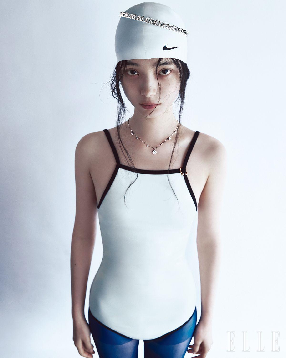 머리에 티아라로 연출한 화이트골드에 404개의 브릴리언트 컷 다이아몬드를 세팅한 로리에 헤어 오너먼트는 8천9백만원대, Chaumet. 화이트골드에 55개의 브릴리언트 컷 다이아몬드를 세팅한 피아제 로즈 네크리스는 1천3백80만원, 어깨 스트랩에 오브제로 연출한 로즈골드에 58개의 브릴리언트 컷 다이아몬드를 세팅한 포제션 오픈 링은 8백25만원대, 모두 Piaget. 블랙 라이닝이 특징인 스윔수트는 13만9천원, Florida Ticket. 수모와 스타킹은 에디터 소장품.