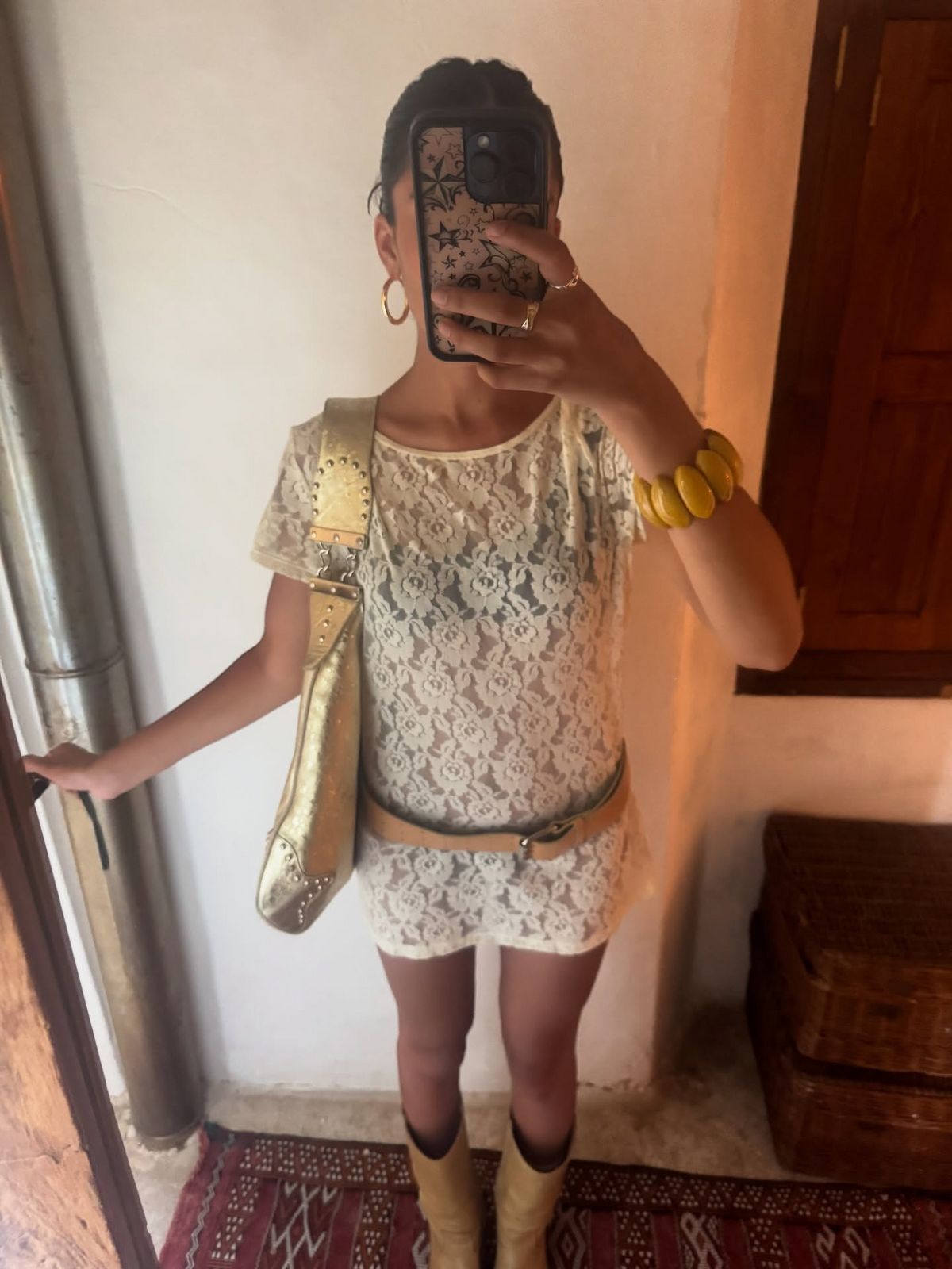하얀 시스루 원피스를 입은 신예 디자이너 조야 가르그. 날아갈 듯 가볍고 시원해 보이죠? 요즘 유행하는 와이드 벨트를 걸쳐 감각적이면서도 스타일리시한 아웃핏을 완성했습니다.