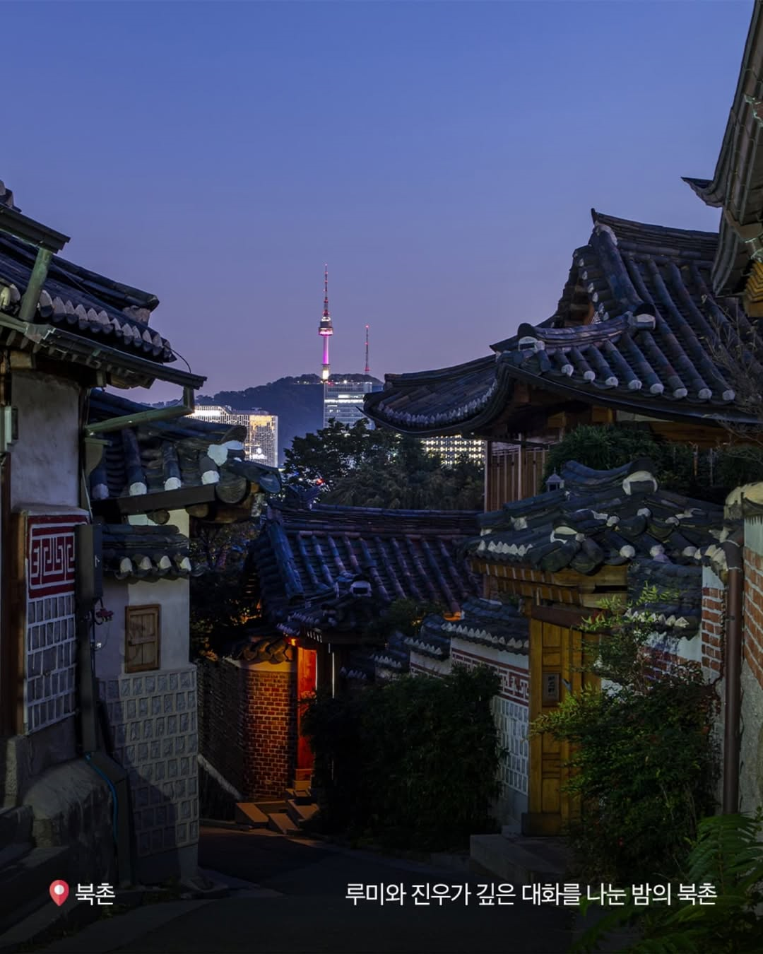 이 가운데 진우와 루미 사이 여러 감정들이 피어 올랐던 북촌을 찾을 때는 주의 사항이 있습니다. 한옥 밀집 주거지역 약 100m 구간(북촌로 11길)은 관광객 방문시간이 월~토요일 오전 10시~오후 5시(일요일은 골목길 쉬는날)로 제한돼요. 실제 시민들이 거주하는 곳이니, 조용한 발걸음으로 방문해 주세요.