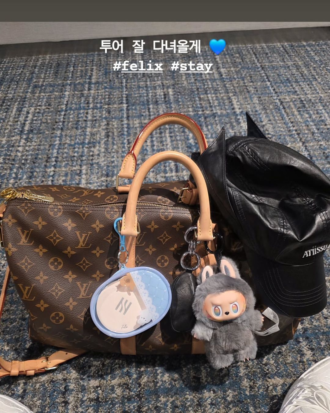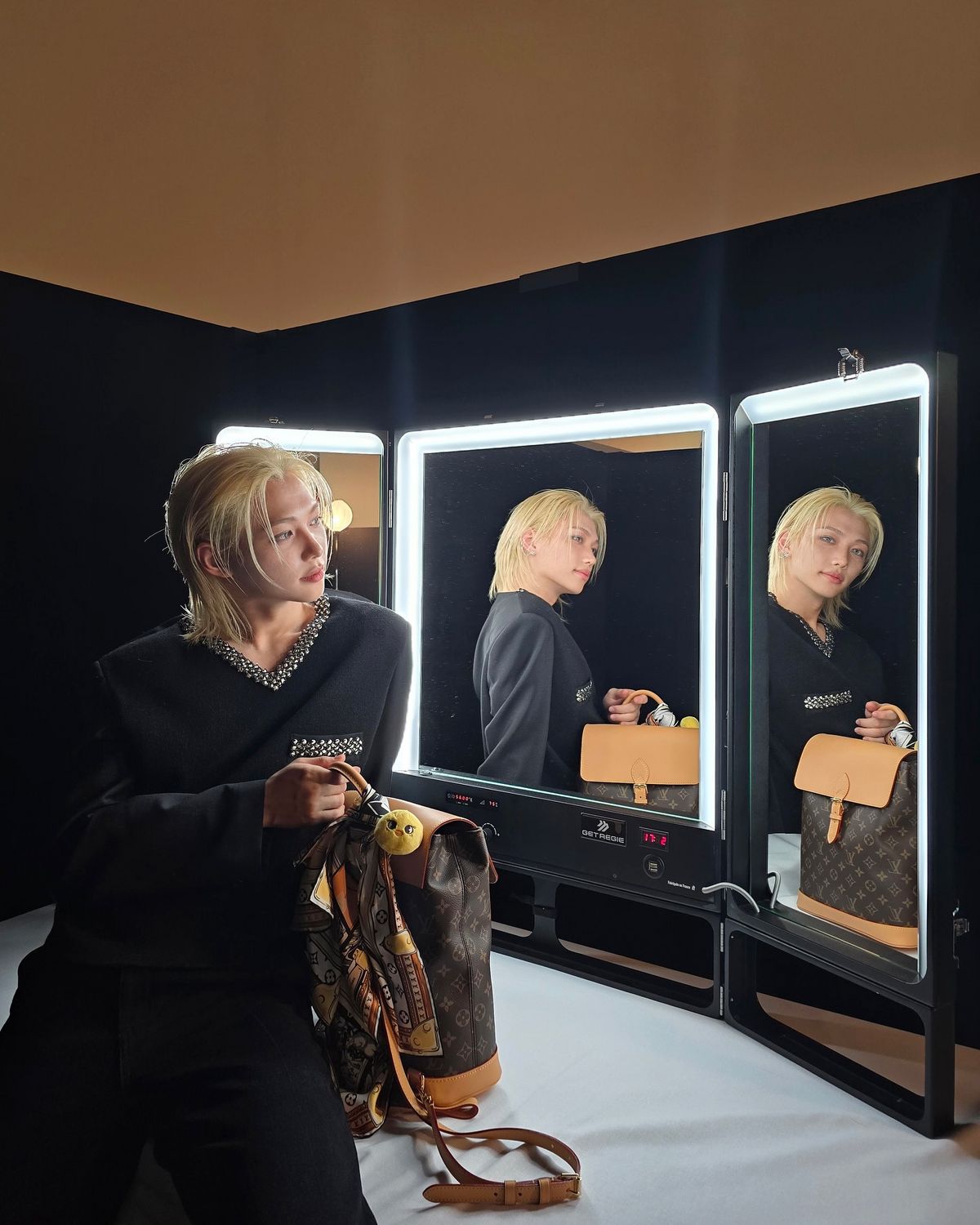 필릭스에게 스타일은 의상에만 국한되지 않습니다. 자신의 이름이 새겨진 헤라 쿠션을 투명 파우치에 담아 가방에 걸거나, 휴대하기 좋은 탬버린즈의 블루 히노키 에그 퍼퓸을 챙기는 모습까지, 뷰티 아이템조차 하나의 액세서리처럼 활용하는 그의 연출력에 박수를 보냅니다.