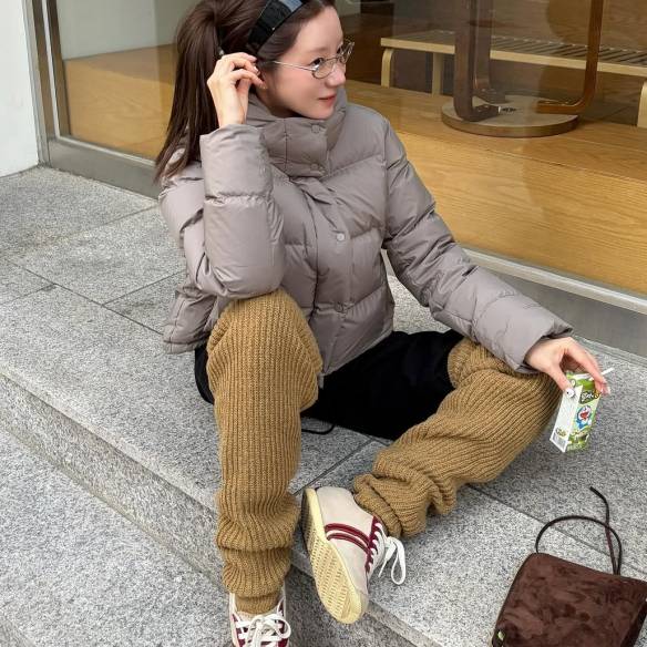 종아리 라인이 너무 부각되는 것이 싫다면 루즈 니삭스를 선택해보세요. 로타 볼코바처럼 무릎 아래까지 흘러내릴 듯하게 니삭스를 신은 다음 앞 코가 뾰족한 슈즈를 더해주면 답답한 느낌 없이 다리가 한결 가늘고 길어 보입니다.