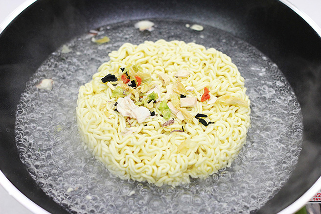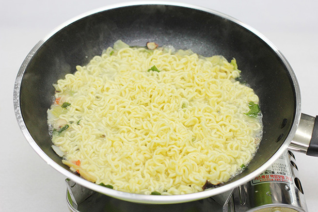 (면발이 눌러 붙을 수 있으니 코팅이 잘 되어 있는 후라이팬을 선택한다)