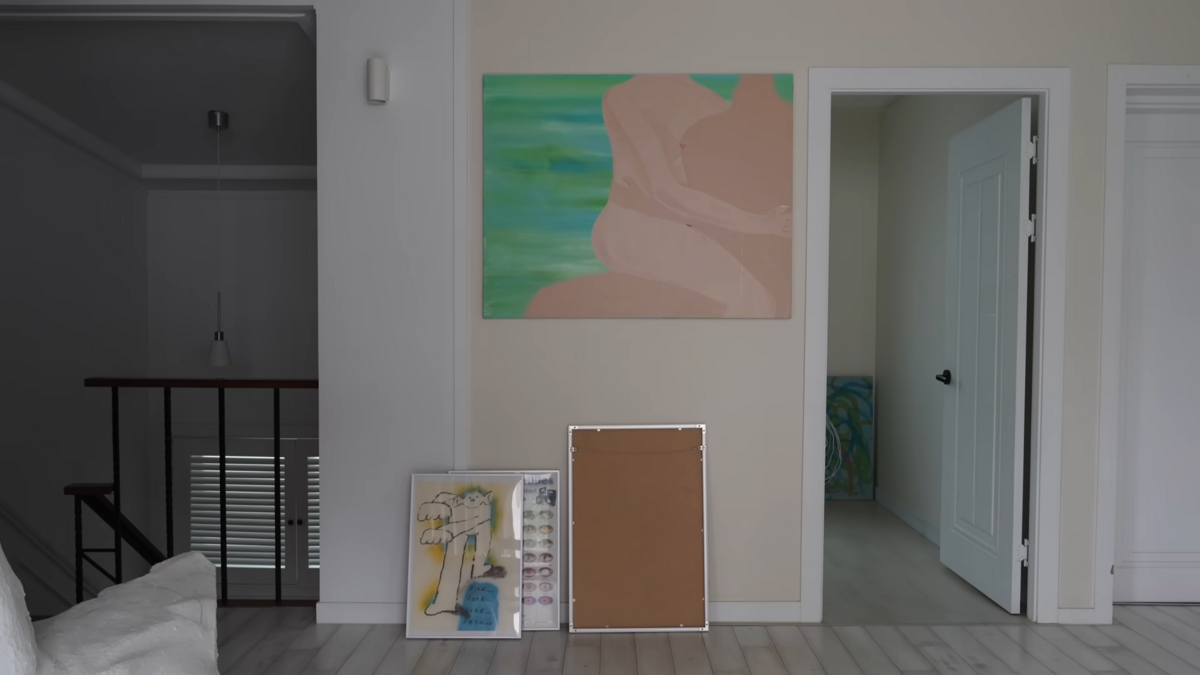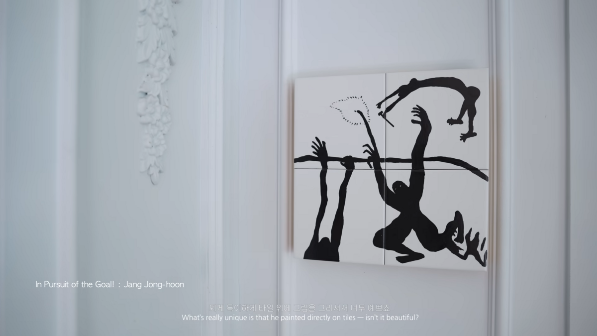집 곳곳에는 그가 아끼는 예술 작품들이 자리합니다. 타일 위에 섬세한 드로잉을 얹는 장종훈 작가의 작품부터, 조각적 긴장감이 서린 고요손 작가의 석고상, 그리고 소키 장 작가의 회화 작품이 한 공간 안에서 어우러지며 다채로운 분위기를 더해줍니다.