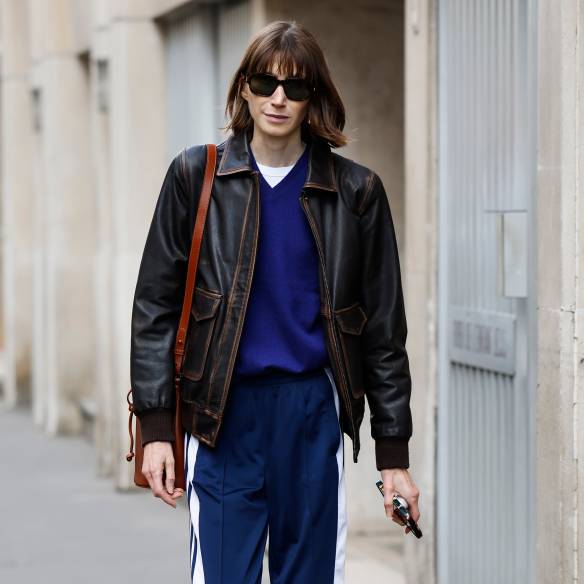 스포티 무드를 선호한다면 브라운 스웻 셔츠 위로 화이트 셔츠 칼라를 꺼내 입은 뒤 같은 톤의 쇼츠를 매치한 셋업 스타일을 추천합니다. 스웻 셔츠 단독 착용보다 훨씬 포멀해 보이는 데다 작은 디테일 하나로 ‘한 끗 다른’ 룩이 완성됩니다. 여기에 캐주얼 스니커즈 대신 블랙 로퍼와 화이트 삭스를 더하면 센스 있는 마무리.