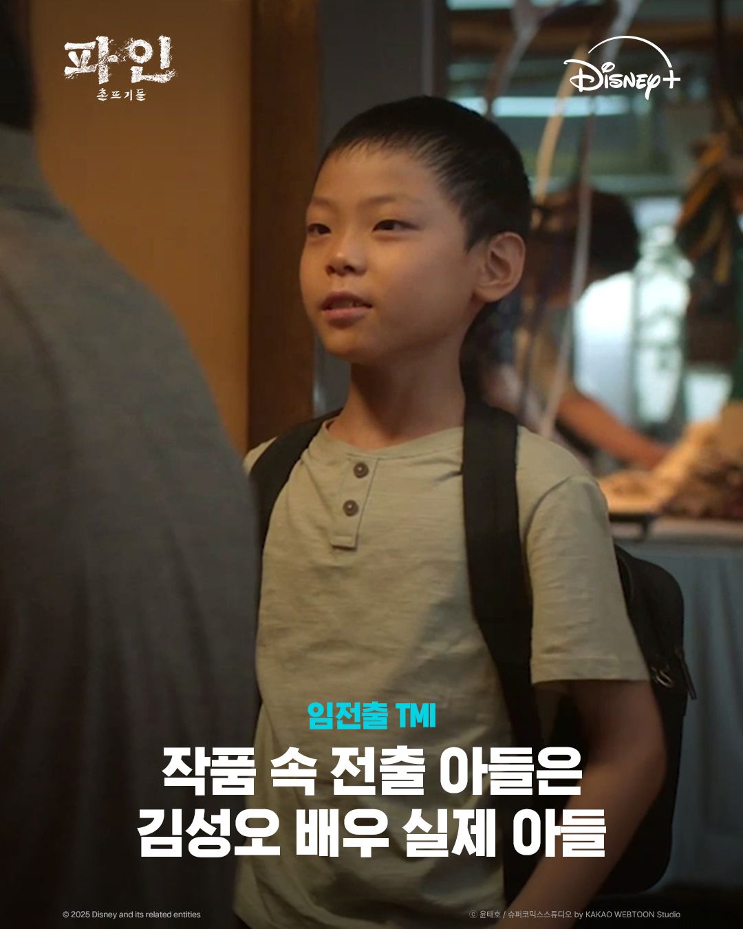 8회 초반 임전출(김성오)의 아들이 등장한 장면도 눈에 띕니다. "아부지 학교 다녀왔어라"고 말하는 아이는 임전출을 연기한 김성오의 친아들, 김아일이라고 하네요. 2016년생인 그는 과거 KBS 2TV <슈퍼맨이 돌아왔다>에 출연해 얼굴을 알렸는데요. 그런 만큼 그의 이번 출연에도 많은 관심이 이어진 바 있어요. 이에 강 감독은 "전출이 부산에서 초등학생 자식이 있고 아내가 있다는 설정"이라면서 아역배우를 캐스팅할까 하다가 김성오에게 실제 아들이 있다는 이야기를 듣고 그를 섭외하게 됐다고 설명했습니다.