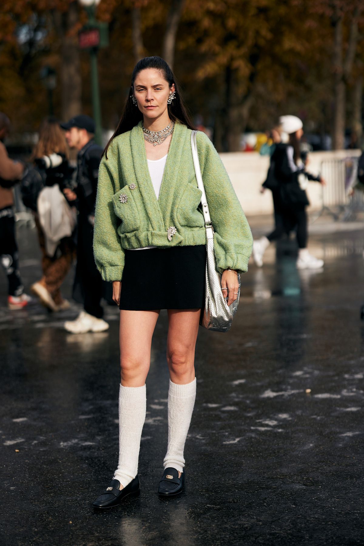 얇고 섬세한 시스루 소재의 무릎 양말은 또 어떻고요. 단정한 미니스커트 세트업에 우아한 분위기를 더하는데요. 블랙 스타킹처럼 연출하면 프레피하면서도 세련된 무드가, 장식이 가미된 디자인은 액세서리 못지않은 포인트가 됩니다.
