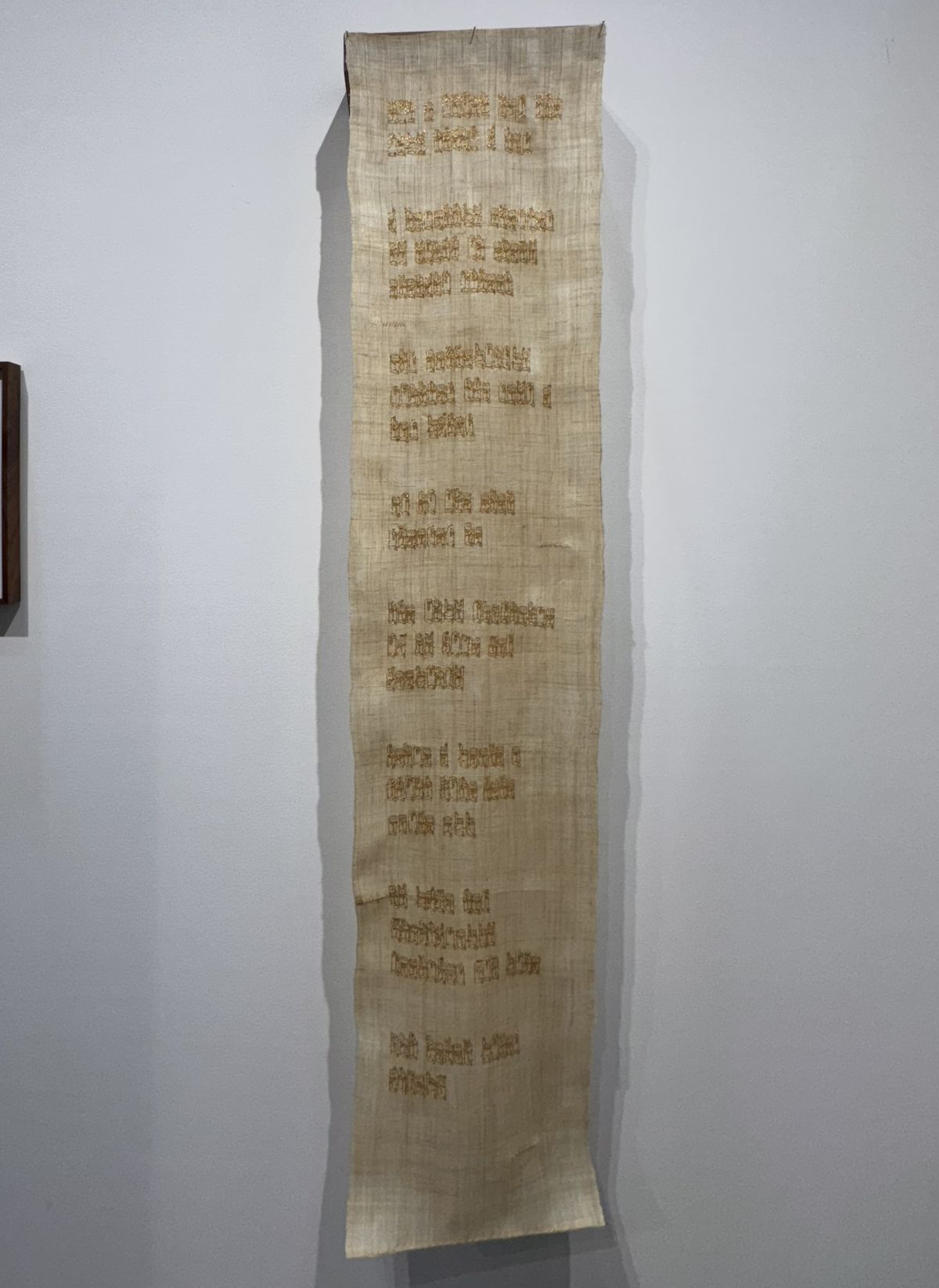 커먼웰스 앤드 카운슬(Commonwealth and counsil) 부스에서 만난 이강승 작가의 작품. 이강승의 작업에서 중요한 방식 중 하나는 ‘전유(appropriation)’라고 한다. 그는 앞선 세대의 작가나 운동가의 작업 그리고 기록을 주로 드로잉이나 자수를 통해 다시 들여와 새로운 의미를 부여한다. 리서치 과정에서 발견한 이미지와 기록은 흑연 드로잉, 삼베와 금실 자수, 세라믹 등 다양한 매체로 다시 쓰인다. 자신의 손·신체로 오랜 시간 공들여 체화하는 방식의 작업을 통하는 것이다. 편집자의 일이 무엇을 번역하는 일과 닮았다고 생각하기 때문인지, 시간을 들여 체화하는 방식으로 책을 만들어온 입장이기 때문인지. 이강승의 작품에 여타의 설명 없이도 자연스레 이끌린다. 매일을 환기하는 작은 의식처럼, 밤마다 작가의 손끝의 결을 따라 새겨진 시간을 가만히 바라보고 싶은 마음.