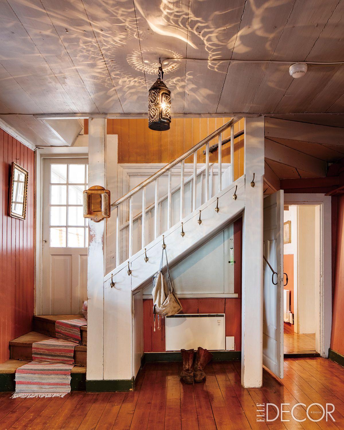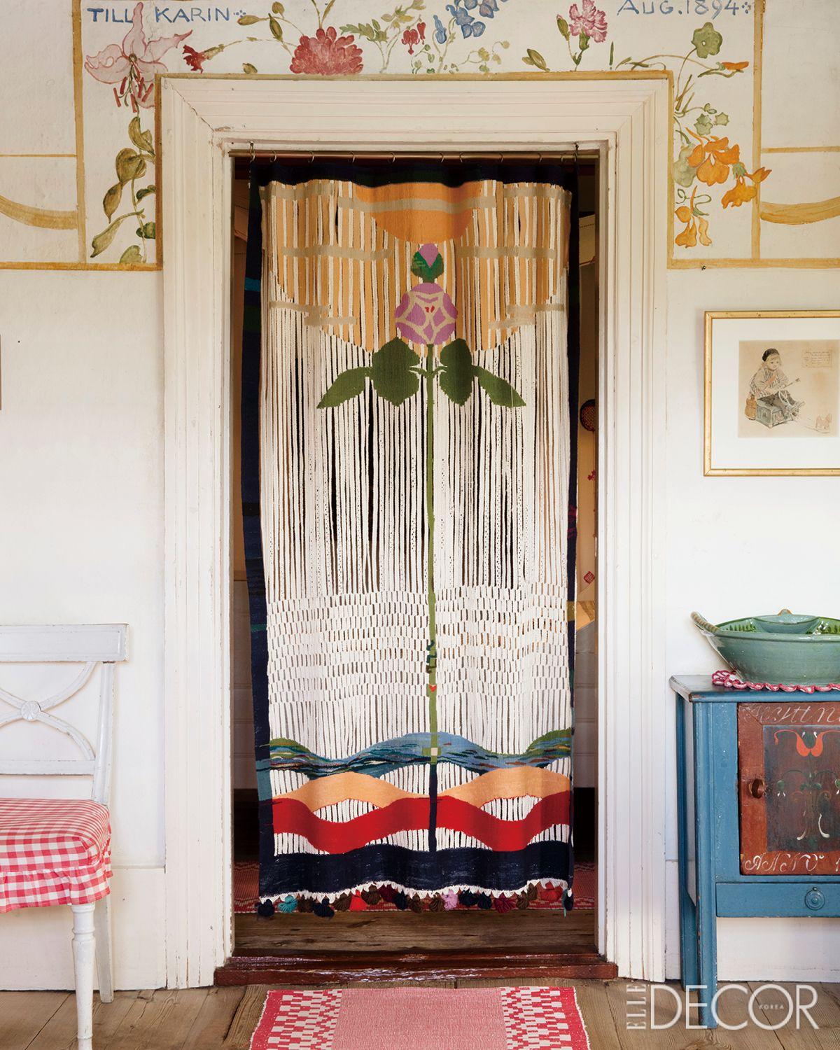층계에 놓인 스트라이프 패턴의 러그, 다이닝 룸의 커튼과 테이블 러너, 벽걸이 러그 등 카린이 직접 짜고 봉제한 예술적인 텍스타일을 발견할 수 있다.