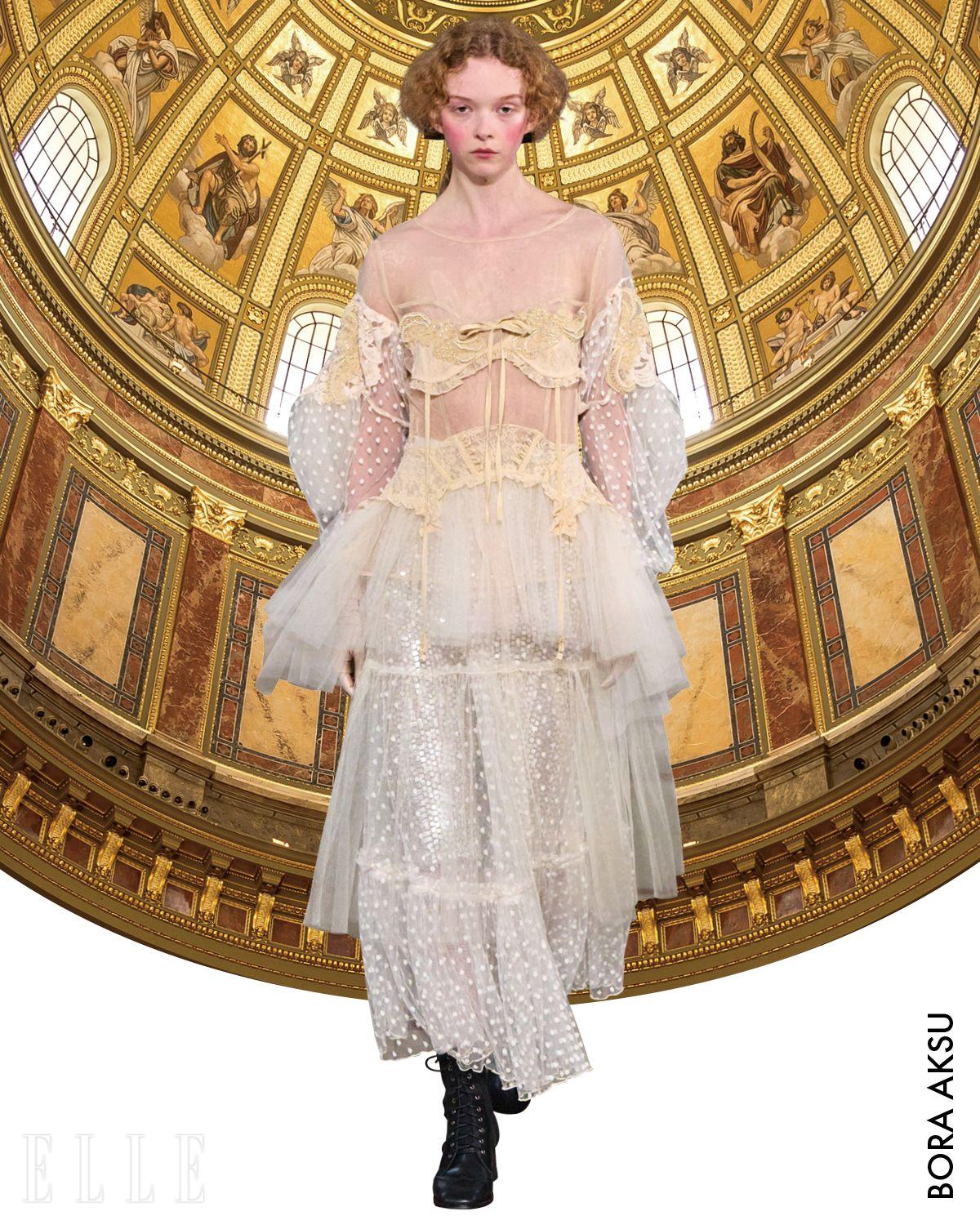이런 역사적 사실을 담은 빅토리언 스타일을 우리는 영화 속에서도 자주 볼 수 있는데, 지난해 개봉한 영화 <가여운 것들 Poor Things>에서는 배우 엠마 스톤이 퍼프 슬리브와 하이넥 블라우스, 부풀린 시폰 드레스 등 빅토리아 무드 특유의 장식적 요소를 과감하게 표현한 룩을 입고 등장했으며, 이는 패션 신에서도 크게 회자됐다. 또 넷플릭스 인기 시리즈 <브리저튼 Brigerton>에서는 고전적이고 사랑스러운 분위기가 강조됐는데, 이는 ‘레전시코어(Regencycore)’라는 새로운 패션 키워드를 탄생시키기도 했다. 그리고 이번 시즌, 빅토리아 무드가 또 한 번 패션 신을 장악했다. 가장 먼저 디올 컬렉션에서 빅토리아 시대의 영향을 강하게 느낄 수 있었다. 코르셋과 레이스, 러플을 컬렉션 곳곳에 활용하고, 크림과 블랙 컬러를 메인으로 활용해 아름답고 고전적인 분위기를 완성했다. 여기에 티셔츠와 가죽 스커트 같은 아이템을 매치해 현대 감각을 주입한 것도 특징이다. 한편, 무게감 있는 빅토리아풍의 패션을 고스란히 담아낸 맥퀸 컬렉션에서는 션 맥기르의 재능을 다시 한 번 엿볼 수 있었다. 드라마틱한 하이넥 칼라를 중심으로 부풀린 실루엣과 레이어드, 고딕 자수 디테일까지 담아낸 컬렉션은 빅토리아 코드를 완벽히 구현하며 화려하고 근엄한 시대의 아우라를 고스란히 펼쳐냈다.