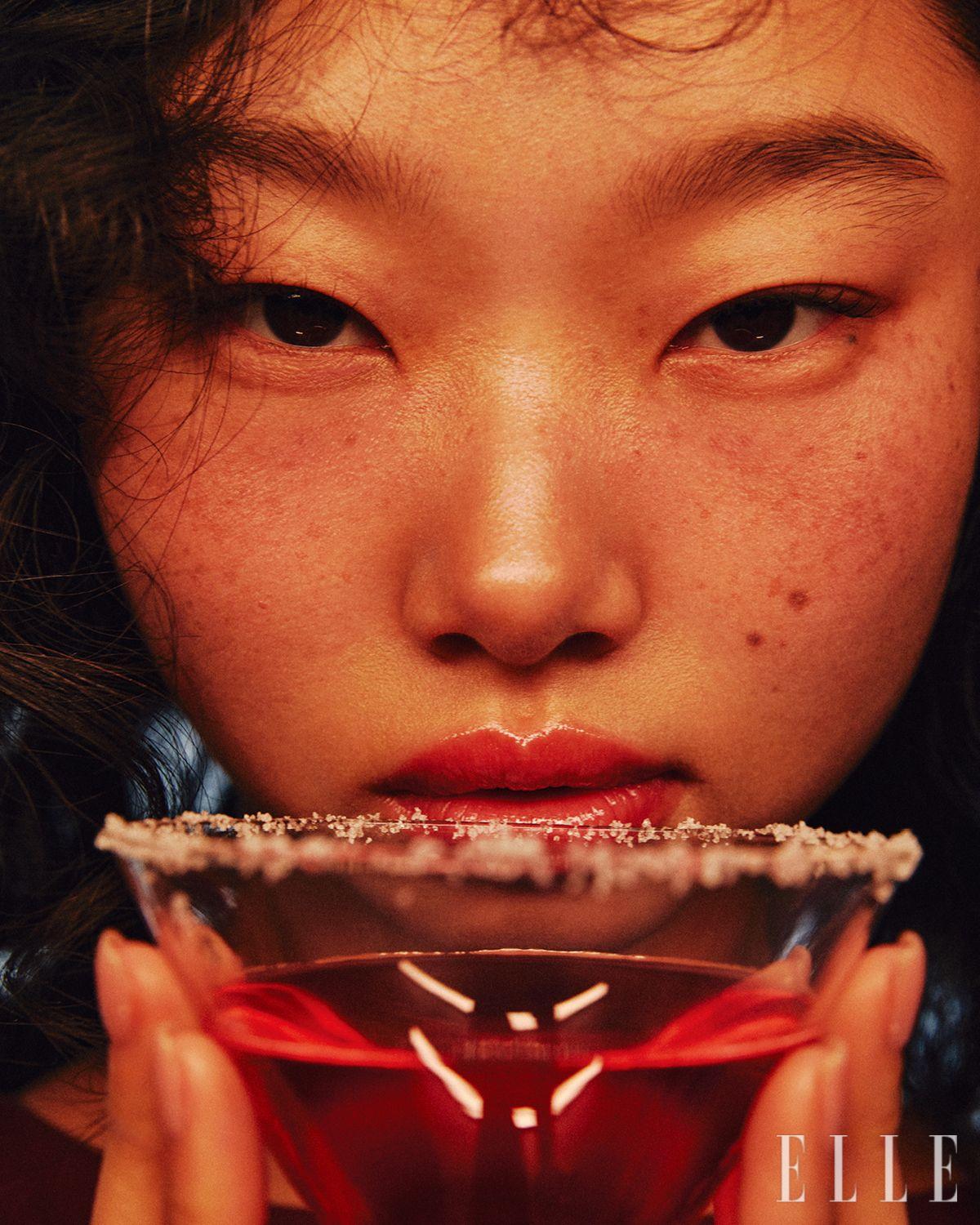 칵테일 잔 가장자리에 설탕을 묻히고 한 모금 머금었을 때의 짜릿한 감각, 달콤한 디저트를 가득 베어 물었을 때 입 안 가득 퍼지는 달달한 구어망드 향기 앞에 무장해제되는 마음. 살짝 취기가 오른 듯 상기된 볼은 Chanel 레 베쥬 스틱 블러셔, 리프레쉬를 손가락에 묻혀 러프하게 터치했고, 달콤한 말을 속삭일 듯한 입술엔 YSL Beauty 러브샤인 캔디 글레이즈, 스트로베리 클라우드를 듬뿍 발랐다.