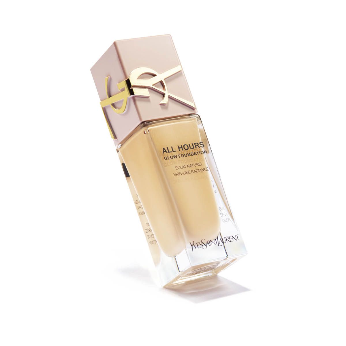 제형이 얇고 가벼워 ‘찐’ 내 피부처럼 얼굴에 자연스럽게 밀착된다. 81%나 함유된 스킨케어 성분 덕분에 속 땅김 없이 온종일 촉촉한 피부 표현이 가능한 올아워 글로우 파운데이션, LC2, 10만4천원대, YSL Beauty.