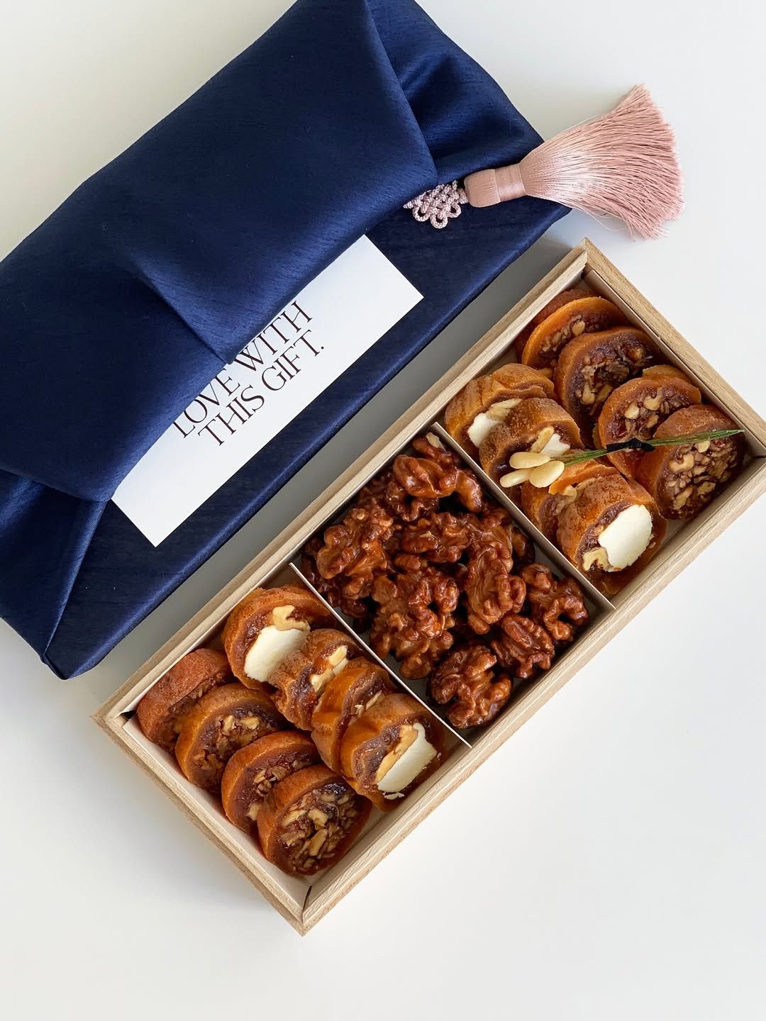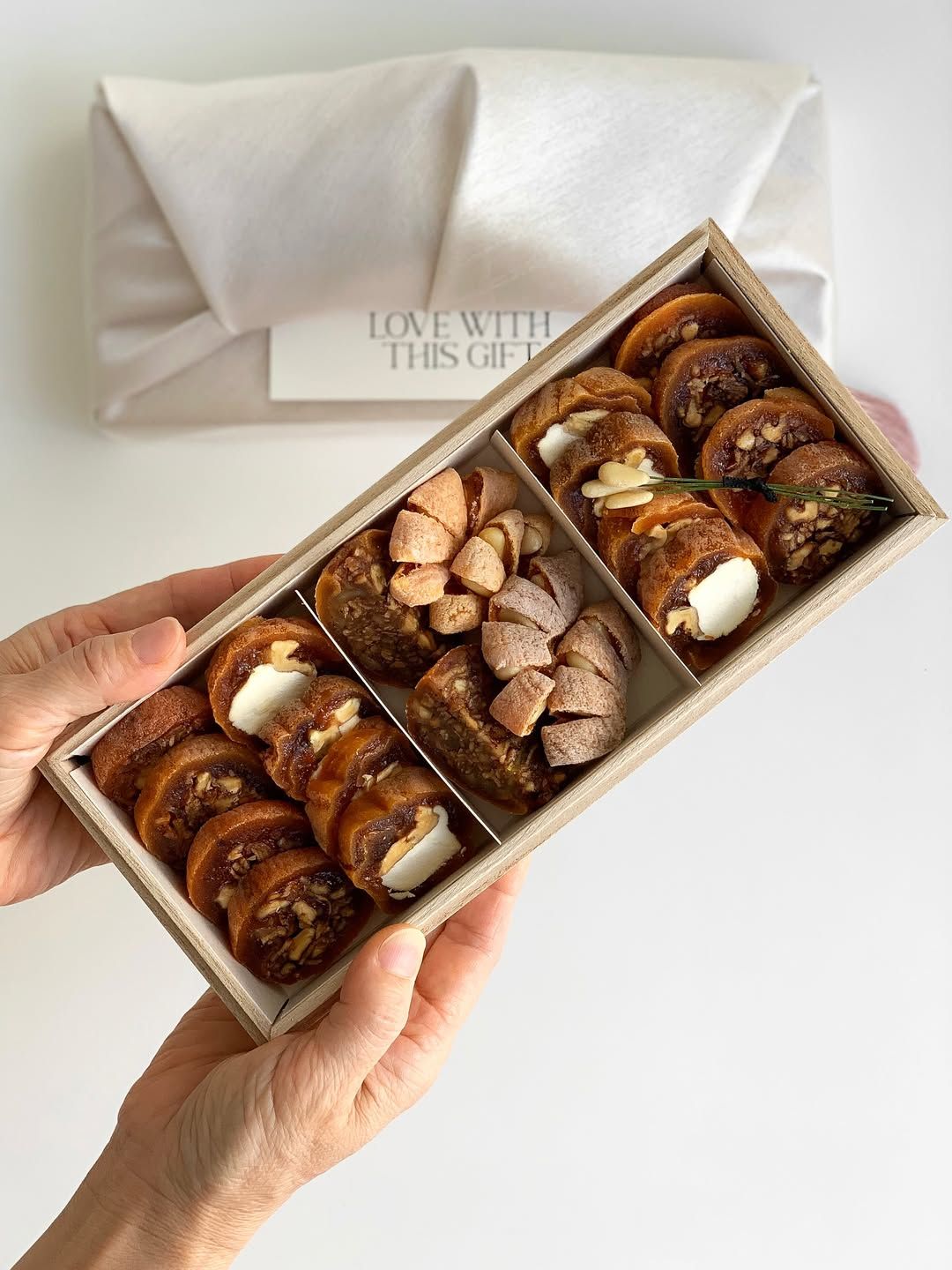 <예화당>의 곶감 세트 역시 고급스러운 구성으로 눈길을 끕니다. 특히 곶감말이 선물세트는 곶감 속에 대추와 유자, 호두정과 등을 채워 전통적인 단맛을 살렸는데요. 여기에 치즈 곶감말이와 곶감잣오림을 더해 한층 풍성한 조합을 완성했습니다. '곶감말이 + 호두정과 & 도라지정과' 세트도 눈여겨볼 만합니다. 곶감말이에 카라멜 풍미의 호두정과와 은은한 도라지정과가 어우러져 클래식하면서도 감각적인 맛을 자랑하거든요. 이외에도 고객 맞춤형 선물 세트가 가능한 것도 장점. 곶감말이에 고소한 누룽지 크리스피, 달콤한 호두정과 등으로 구성된 세트 메뉴도 주문 가능하다는군요.