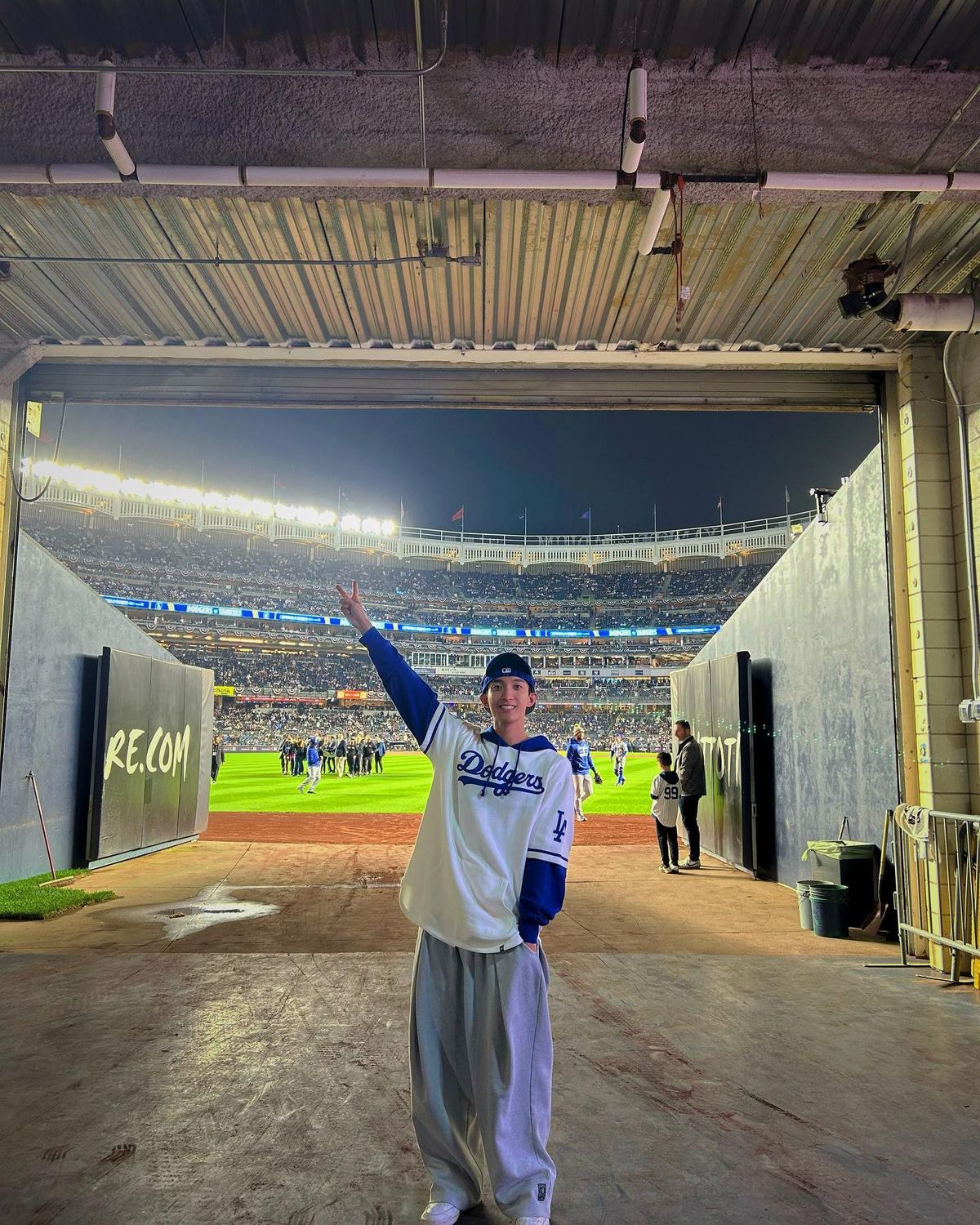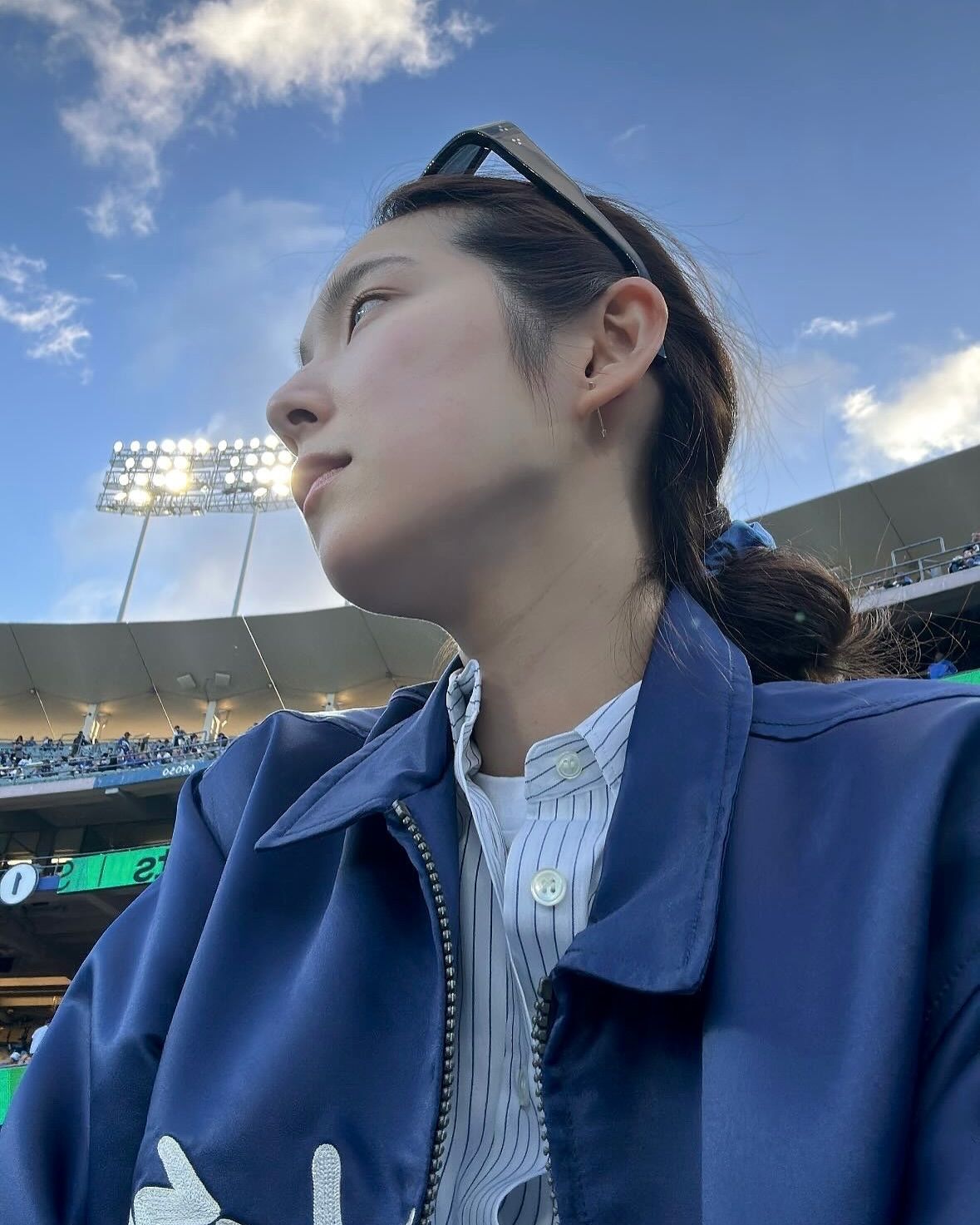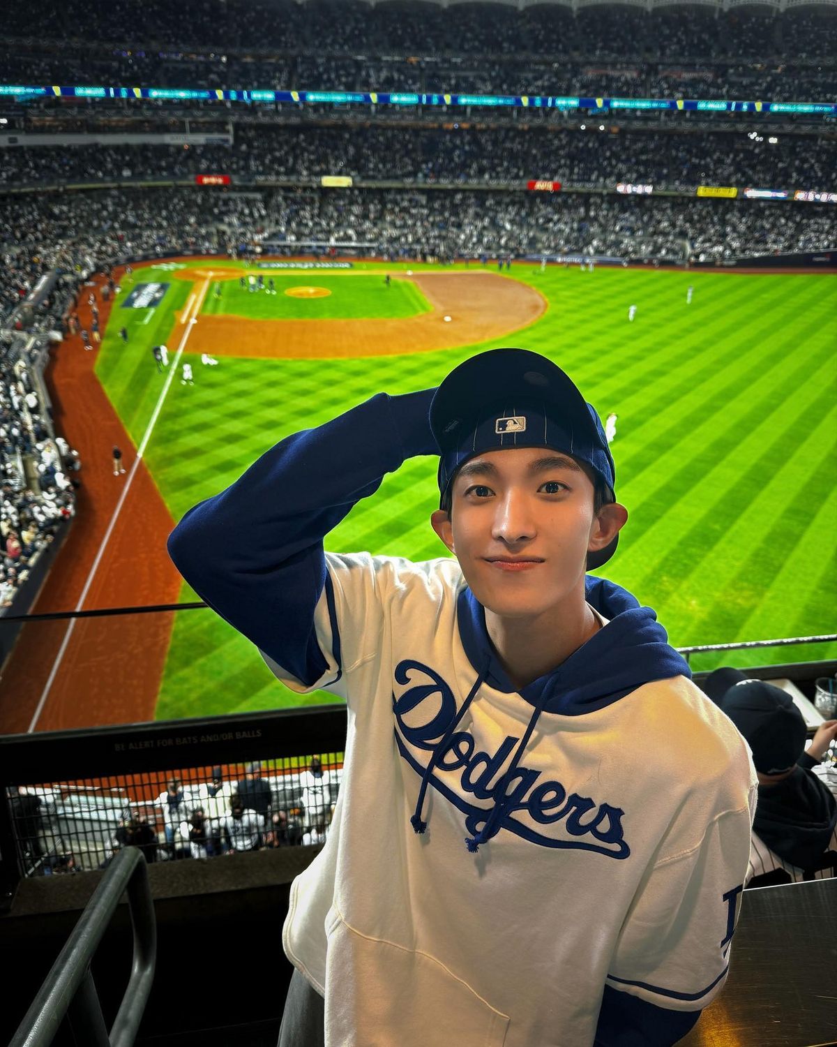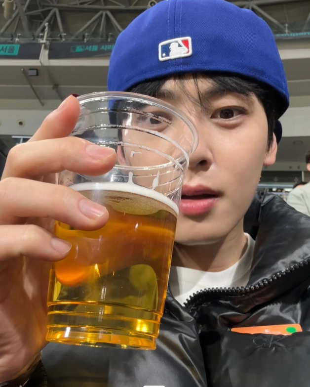 」차은우와 세븐틴 도겸은 야구장에서 일단 볼캡을 거꾸로 쓰는 것부터 시작합니다. 이 경쾌하면서도 깔끔한 제스처가 바로 ‘야구장 남친룩’의 정석이죠. 차은우는 짙은 블루 볼캡을 살짝 눌러쓰고, 블랙 점퍼를 더해 캐주얼하면서도 스트릿한 무드를 완성했습니다. 모자와 아우터의 질감이 만들어내는 대비가 한층 세련된 인상을 주죠.
