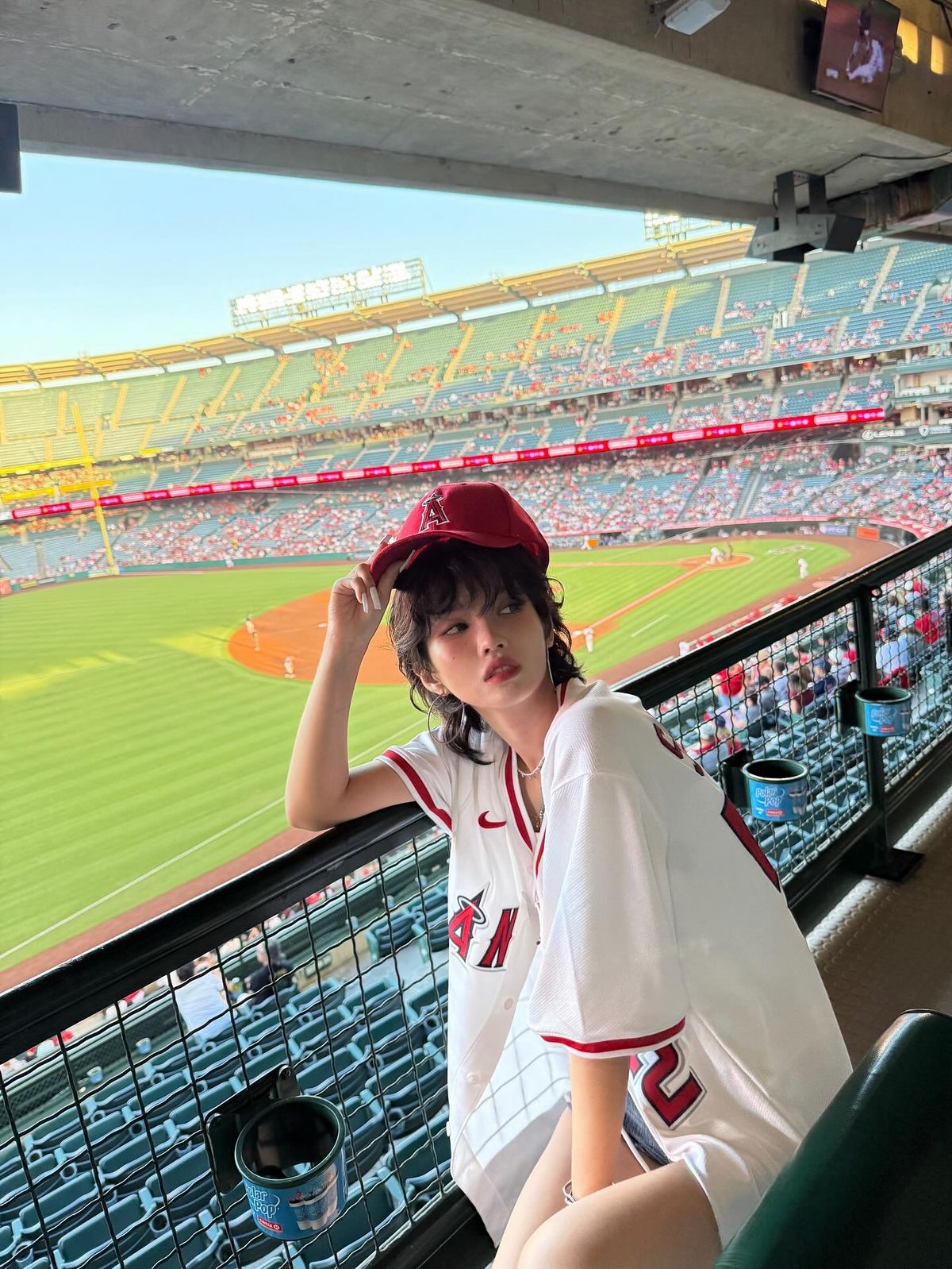 」있지 예지와 (여자)아이들 미연과 소연, 베이비몬스터는 야구장 룩의 포인트로 데님을 선택했습니다. 예지는 화이트 스트라이프 유니폼 톱에 다크한 컬러의 부츠컷 데님 팬츠를 매치해 심플하면서도 단정한 무드를 연출했는데요. 찰랑이는 긴 생머리 아래로 톱을 살짝 올려 허리선을 드러낸 디테일에서 스포티한 무드와 함께 긴장감을 더했습니다. 과한 노출 없이도 시선을 끄는 야구장 여친룩의 정석이죠.