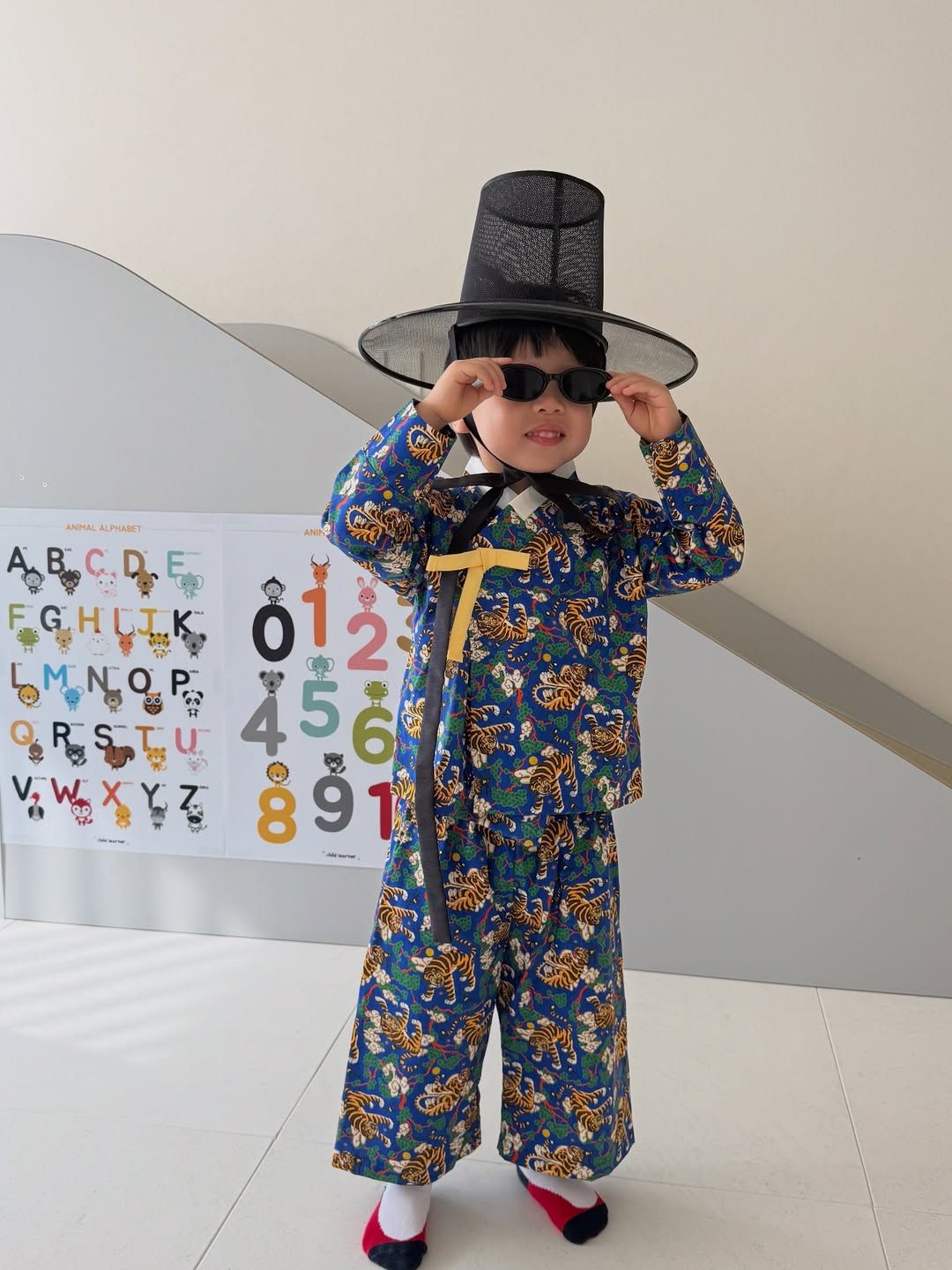 홍현희, 제이쓴 부부는 추석을 맞아 한복 차림의 아들 준범 군 사진을 SNS로 공개했습니다. 사진을 보니, 상하의 모두 민화 속 호랑이 패턴으로 이뤄져 있네요. 한복에 잘 어울리는 양말과 갓, 선글라스를 착용한 것도 돋보이고요.