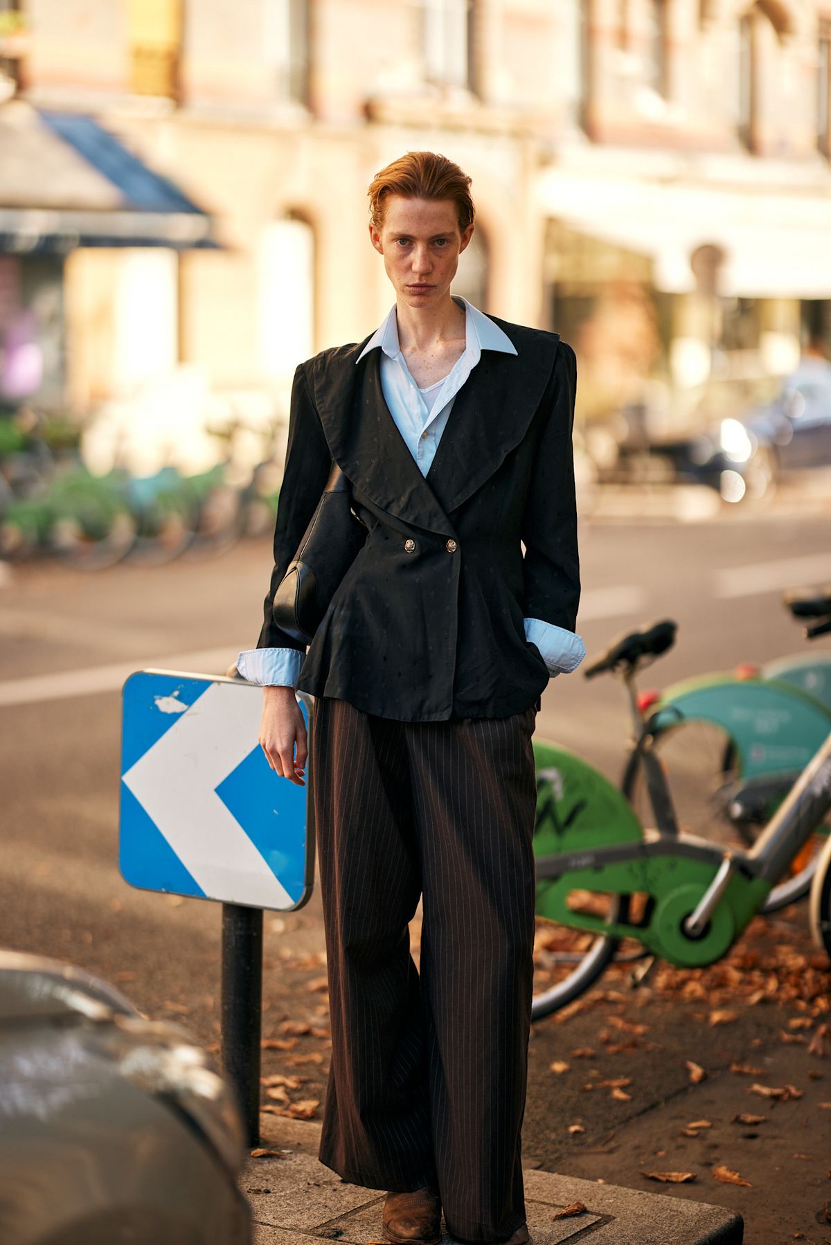 매끈한 블랙 재킷을 입을 땐 셔츠 칼라를 밖으로 빼 느슨하게 연출해보세요. 와이드 팬츠가 여유를 더해주니 긴장감은 풀리고 자연스러운 매력이 피어나죠. 꼭 셋업이 아니어도 좋습니다. 자로 잰 듯한 핏이나 실루엣보다 중요한 건 결국 느낌이니까요.