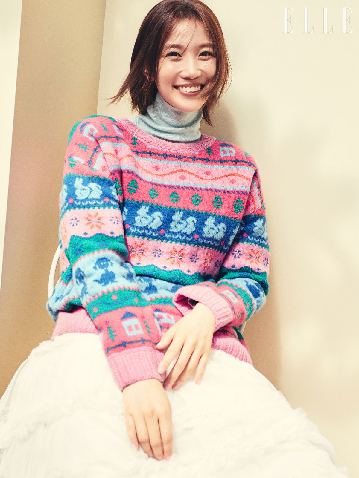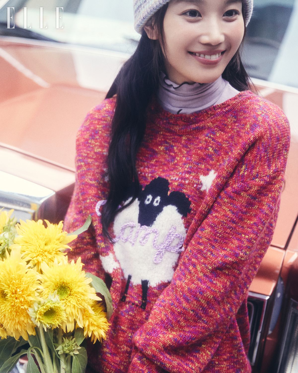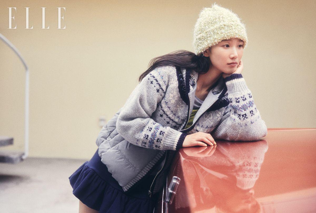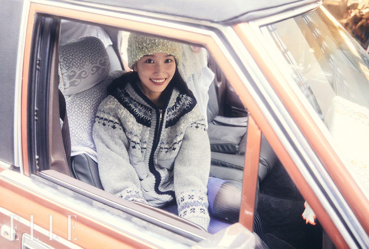 자카르 패턴이 돋보이는 니트 톱은 Benetton.