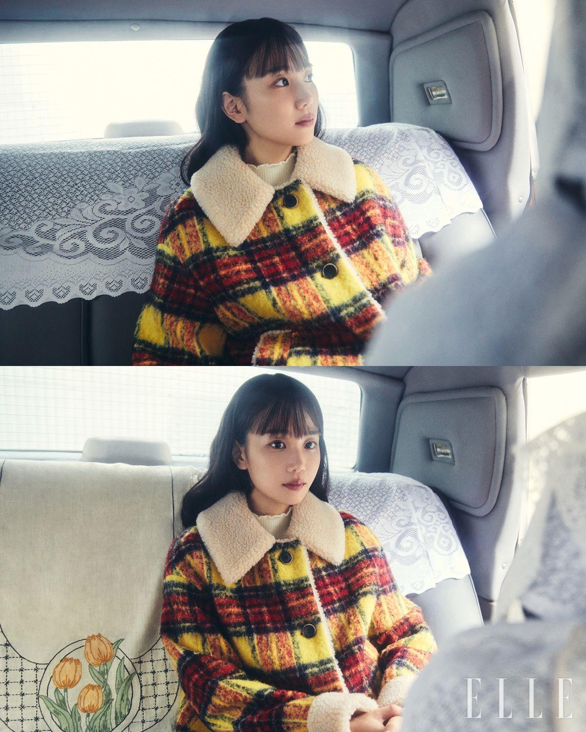 체크 패턴과 양모 배색의 코트는 Benetton.