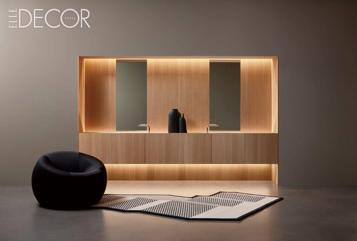 」나무와 대리석이 만나 우아한 욕실을 완성했다. 이탈리아를 기반으로 한 욕실 브랜드 ‘안토니올루피’는 천연 오크로 제작한 캐비닛이 결합된 일체형 대리석 세면대를 선보였다. 이는 기존 모델인 ‘스트리트’를 확장한 버전으로, 평행선이 만들어내는 직선의 기하학적 구조와 소재 간의 조화가 어우러져 현대적 럭셔리를 구현한다.
