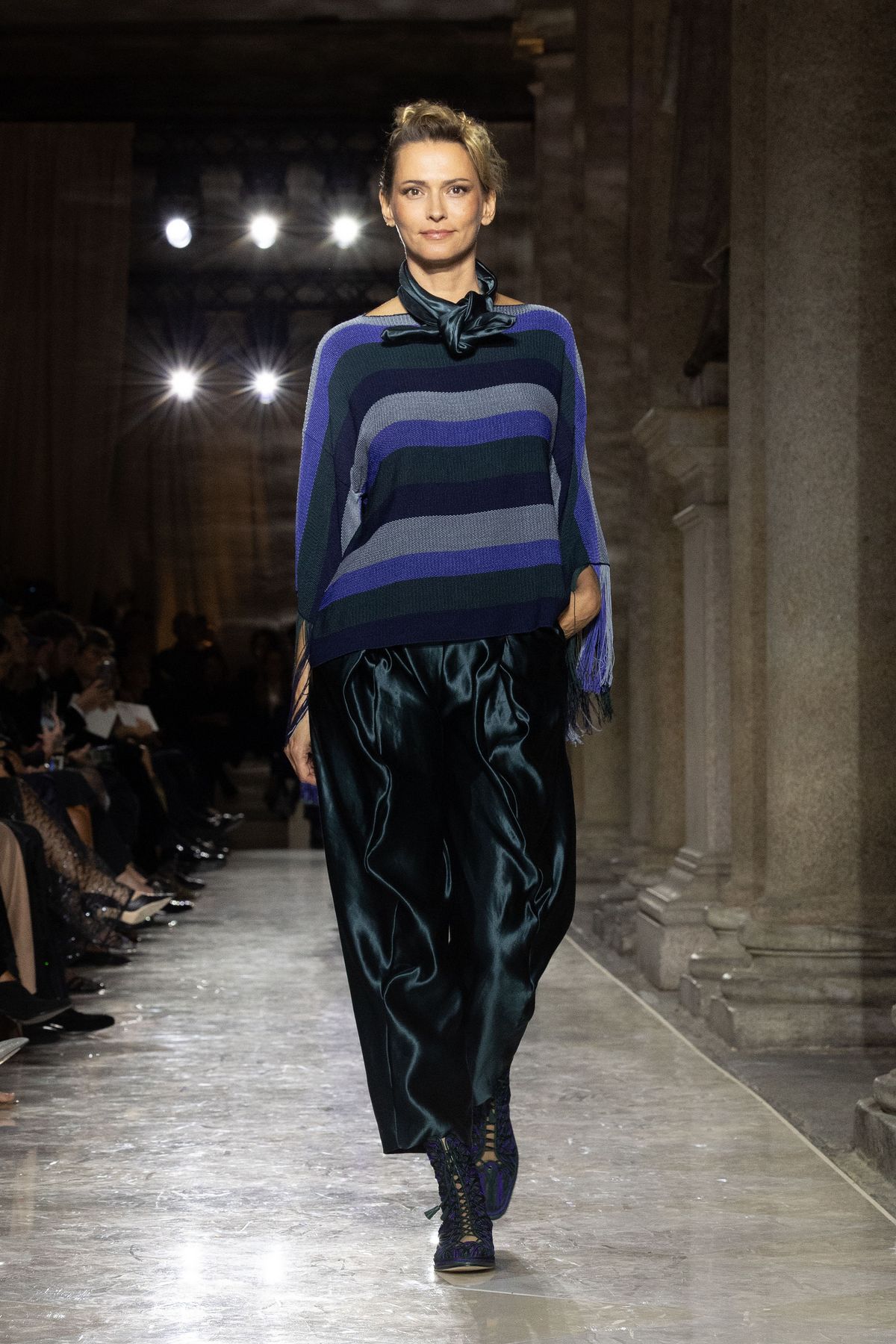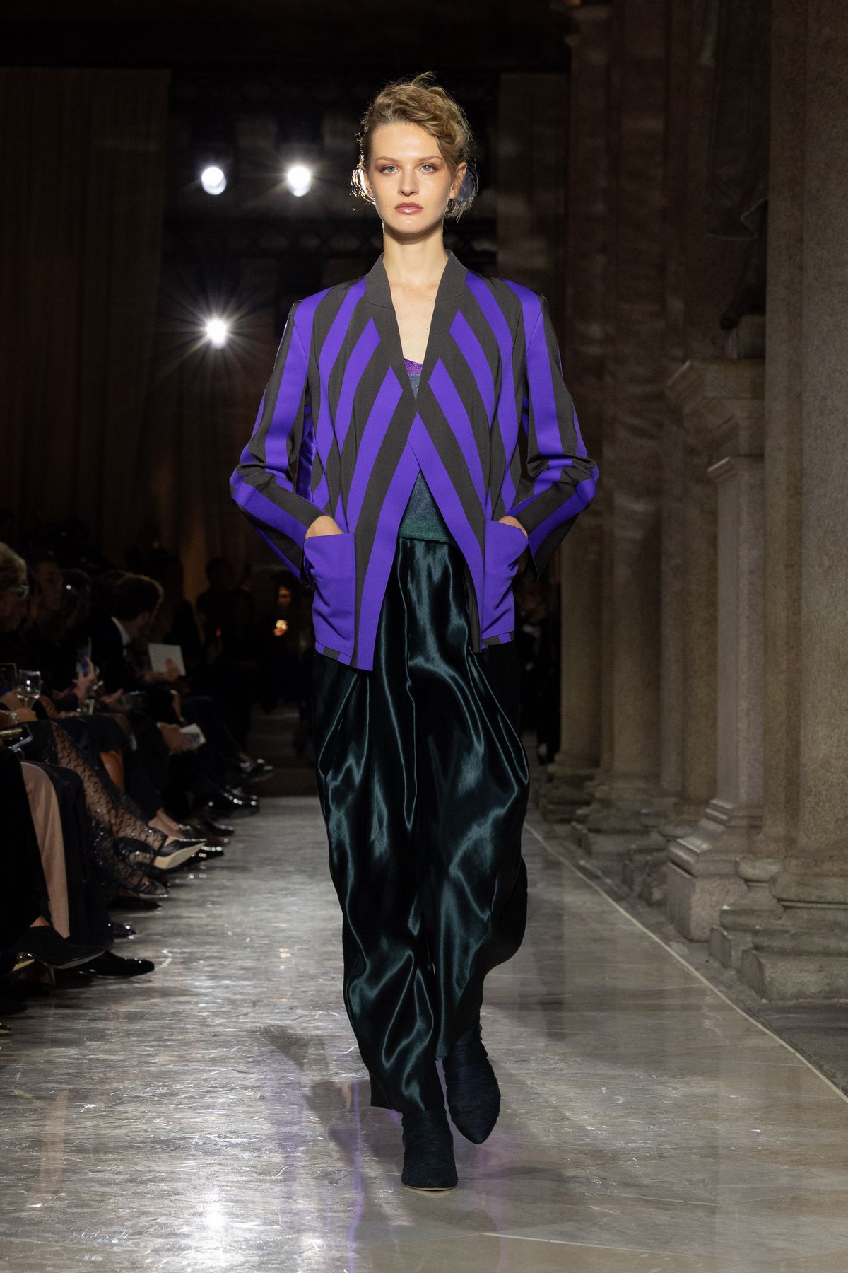 특히 브레라 미술관의 회화, 조각, 색채와 질감이 아르마니의 패브릭, 드레이프, 실루엣과 교차하며 예술과 패션의 대화를 만들어냈는데요. 테일러링의 재해석, 독창적인 장식 감각, 뉴트럴하지만 단조롭지 않은 색조 그리고 기법과 마감, 자수에서 드러나는 미학적 풍부함이 두드러졌습니다. 이러한 요소들은 조르지오 아르마니의 절제된 창의성이 드러나는 과정을 보여주며 ‘절제’라는 개념 자체를 새롭게 정의했죠.