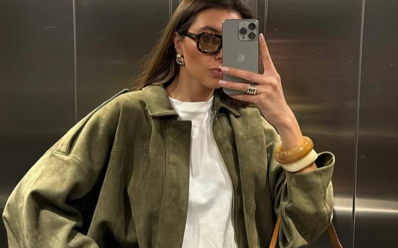 」퍼의 부피감이 부담스럽게 느껴진다면 네크라인에 시어링 디테일이 더해진 재킷을 입는 것만으로 충분하죠. 파스텔 톤의 시스루 스커트, 오픈 토 샌들 등 여름에 즐겨 입던 아이템을 믹스 매치하면 더욱 낭만적인 글램 룩이 완성됩니다.