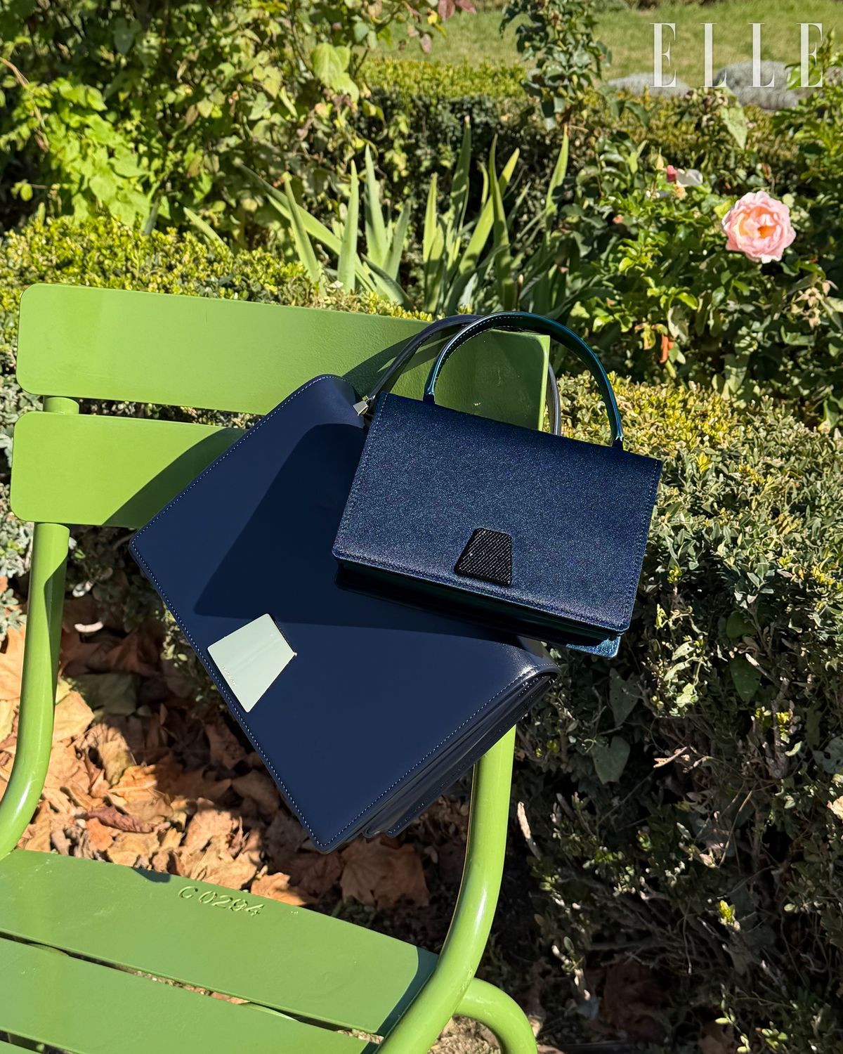 데님 미디움 앨리스 백과 네이비 새틴 미니 엘리스 백은 모두 가격 미정, Akris.