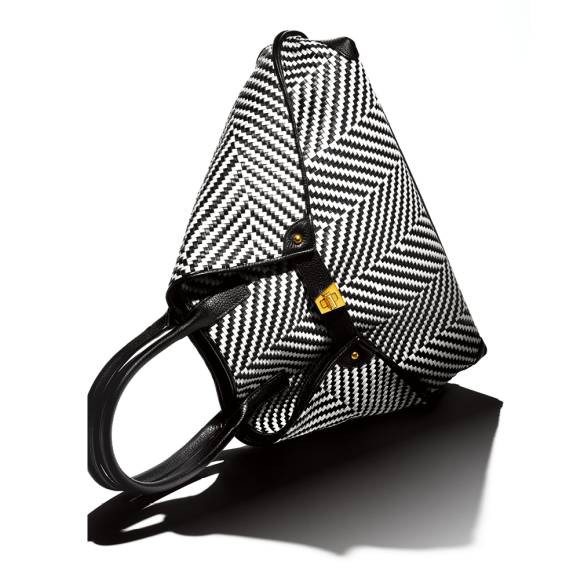 데님 미디움 앨리스 백은 4백 90만원, 블랙 새틴 미니 엘리스 백은 3백 50만원, 모두 Akris.